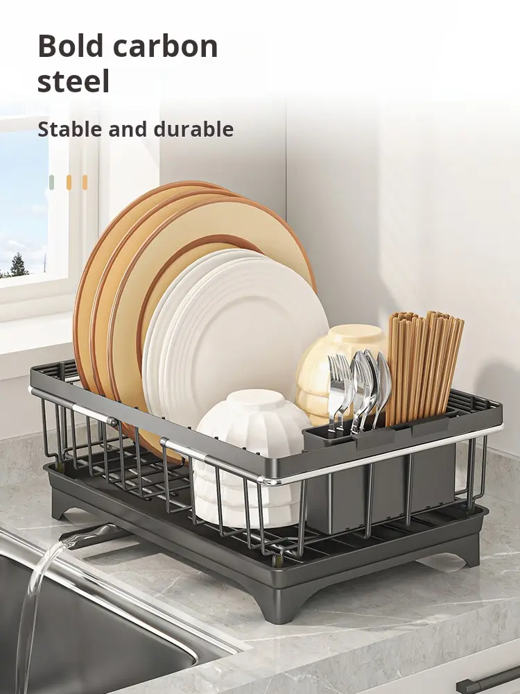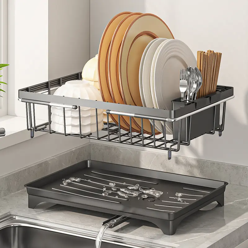 This drying rack is versatile. It can be used for dishes, fruits, and kitchenware. It's a practical addition to any kitchen. The adjustable feature makes it suitable for different needs.