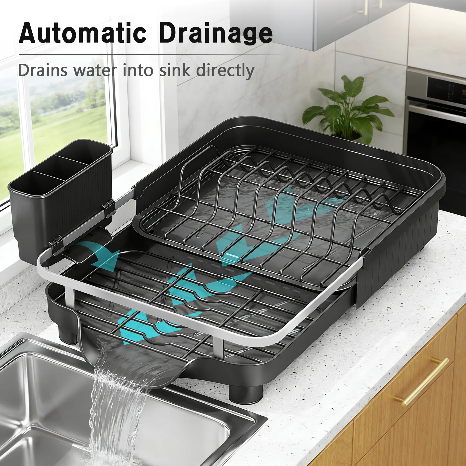 This dish drying rack is a must-have for any kitchen. It provides a convenient solution for drying dishes while keeping your counter space clear. The automatic drainage spout adds to its functionality, making it a practical choice for everyday use.