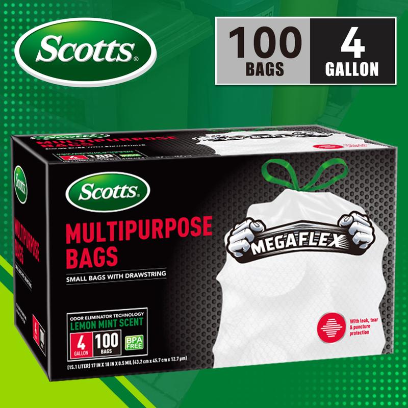 5. Scotts 100 Bags 4 Gallon 1 Pack Expandable Plastic Disposable Garbage Bags-Super Strong Trash Bag, Leak-Resistant, Odor-Proof For Bedroom, Kitchen, Living Room, Outdoor, And Toilet Use - Convenient And Sanitary Waste Solution MULTIPURPOSE BAGS