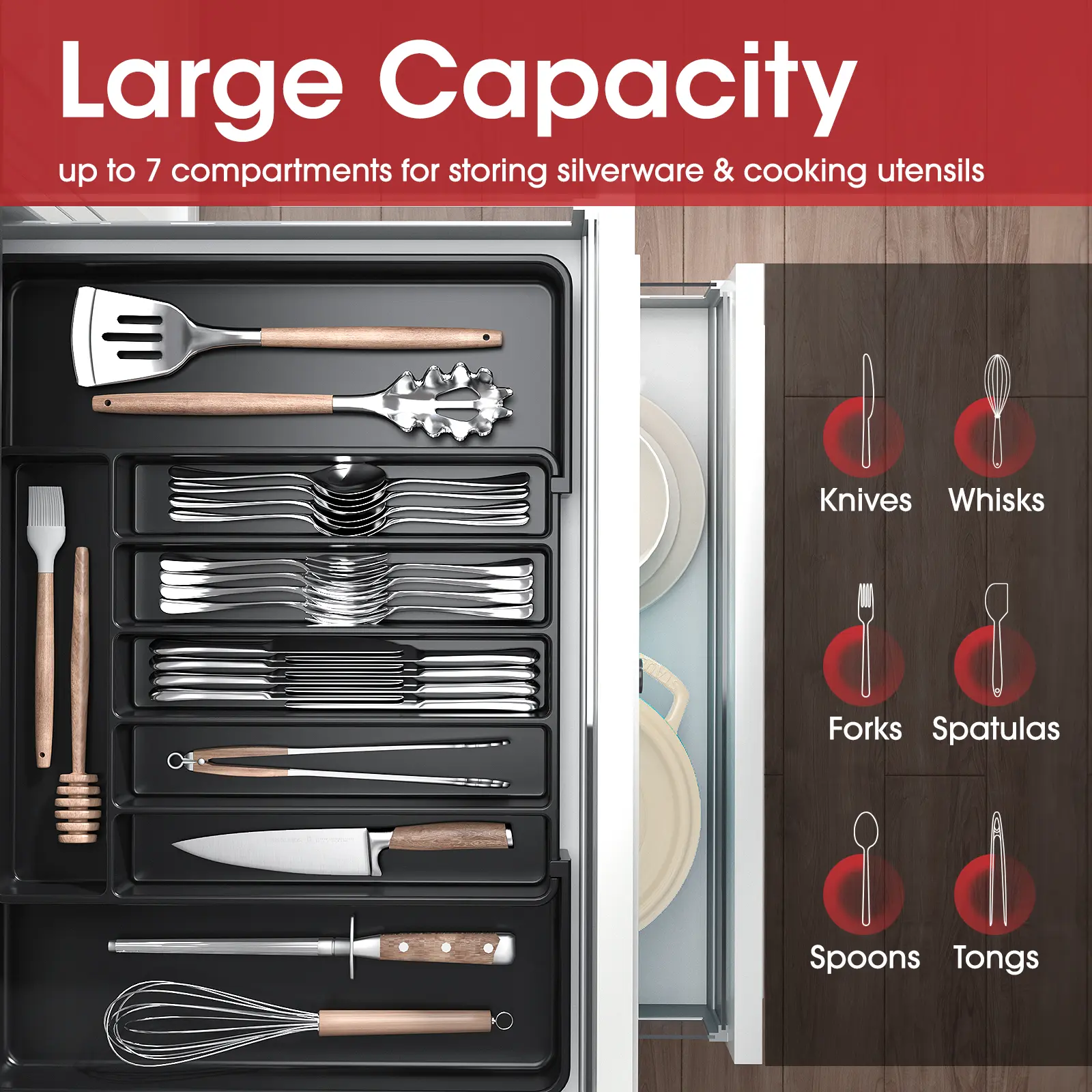 ·Adjustable Kitchen Drawer Tray: This organizer is designed for forks, knives, and spoons. It offers multipurpose storage solutions for your kitchen drawer. 🍴