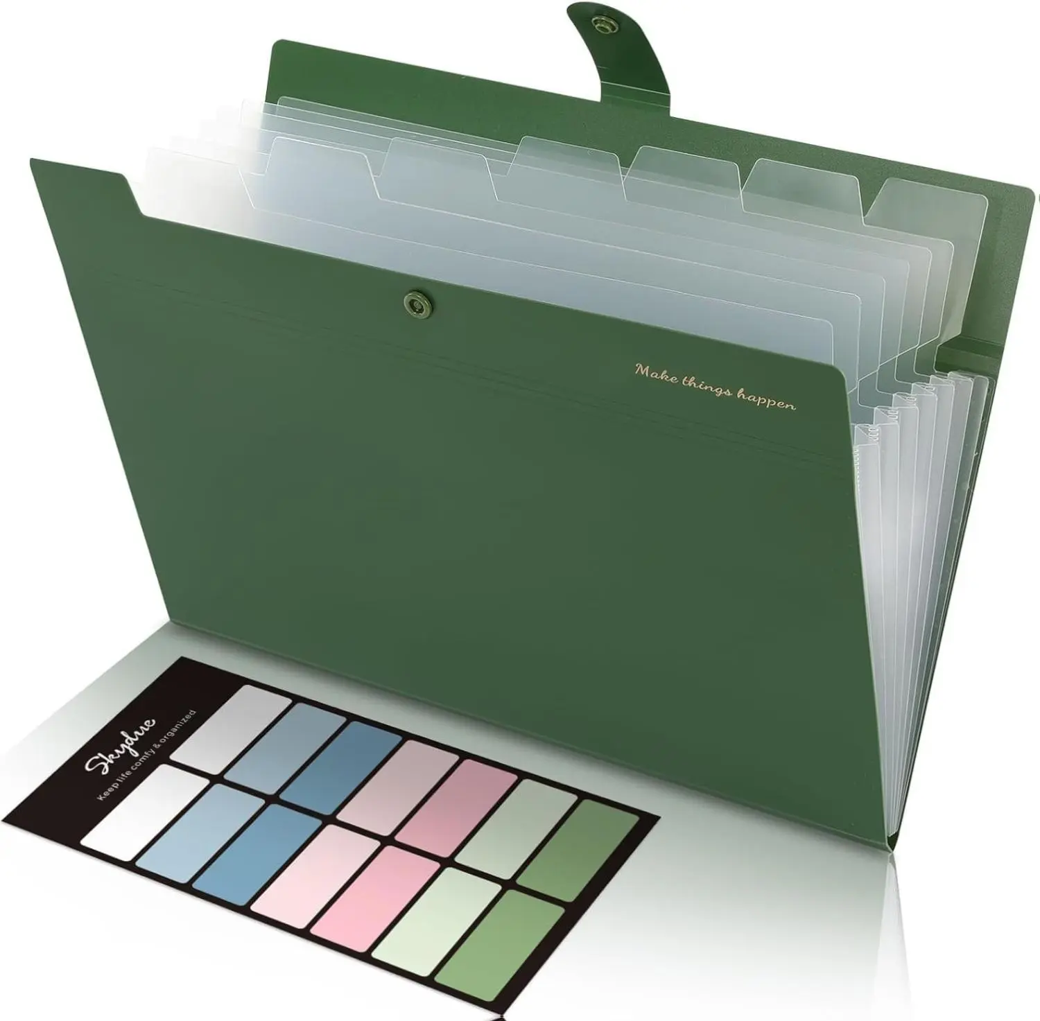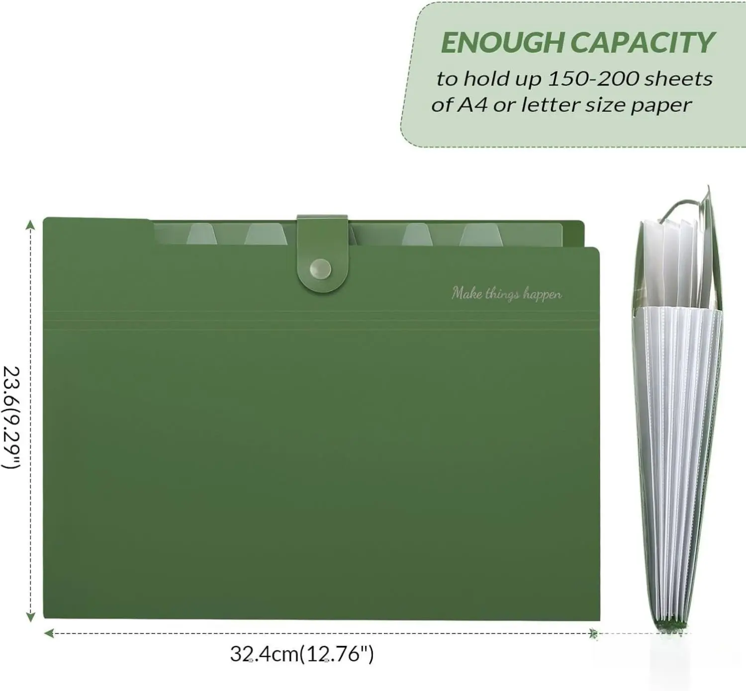 Ideal for organizing course papers, business tax documents, recipes, and important receipts. New version file folder with 13 pockets. Slim design allows easy carrying in backpacks. Perfect for letter-size paper storage.
