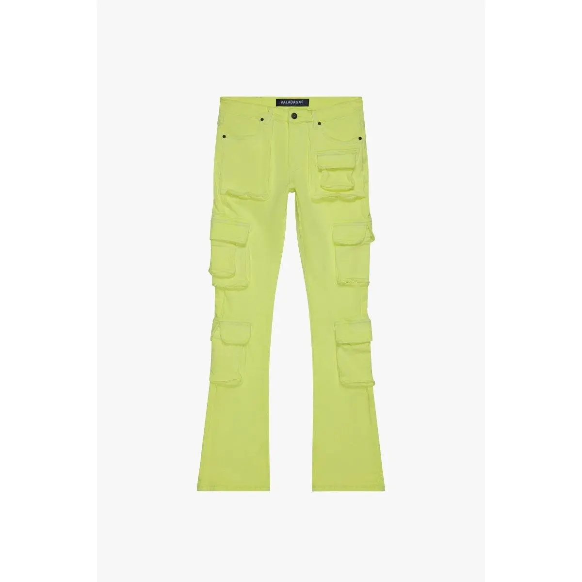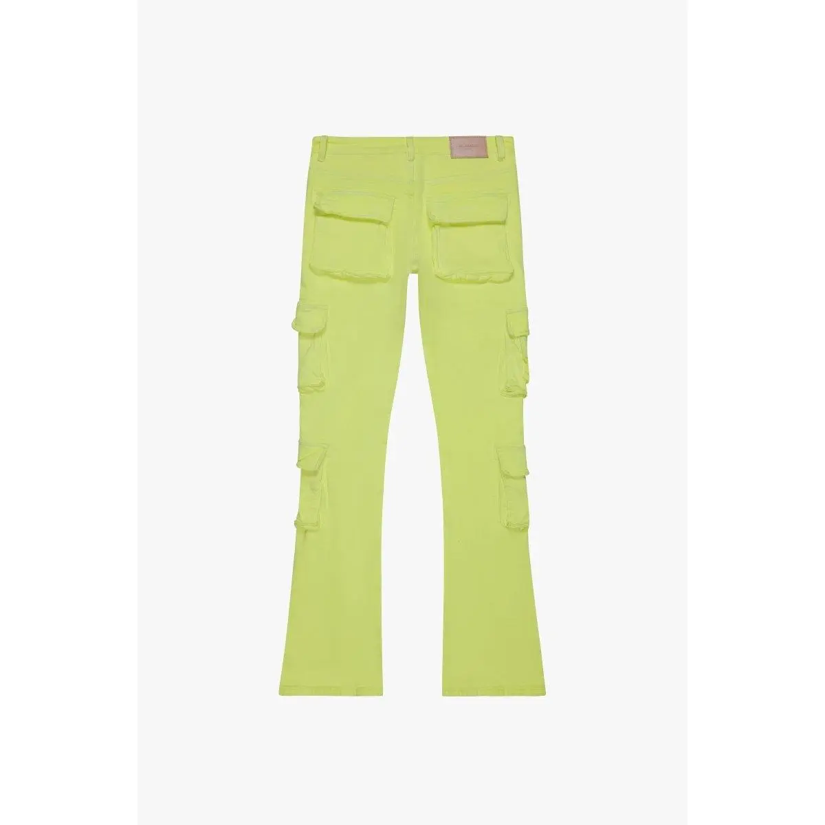 The ""Expanse Stacked Flare Jean Yellow"" is designed for those who aren't afraid to stand out. With its bold neon yellow hue and stacked flare silhouette, these jeans redefine contemporary streetwear. Equipped with multiple functional pockets for utility and style, they merge fashion-forward design with practical comfort. Pair them with a simple top to let the jeans take center stage.