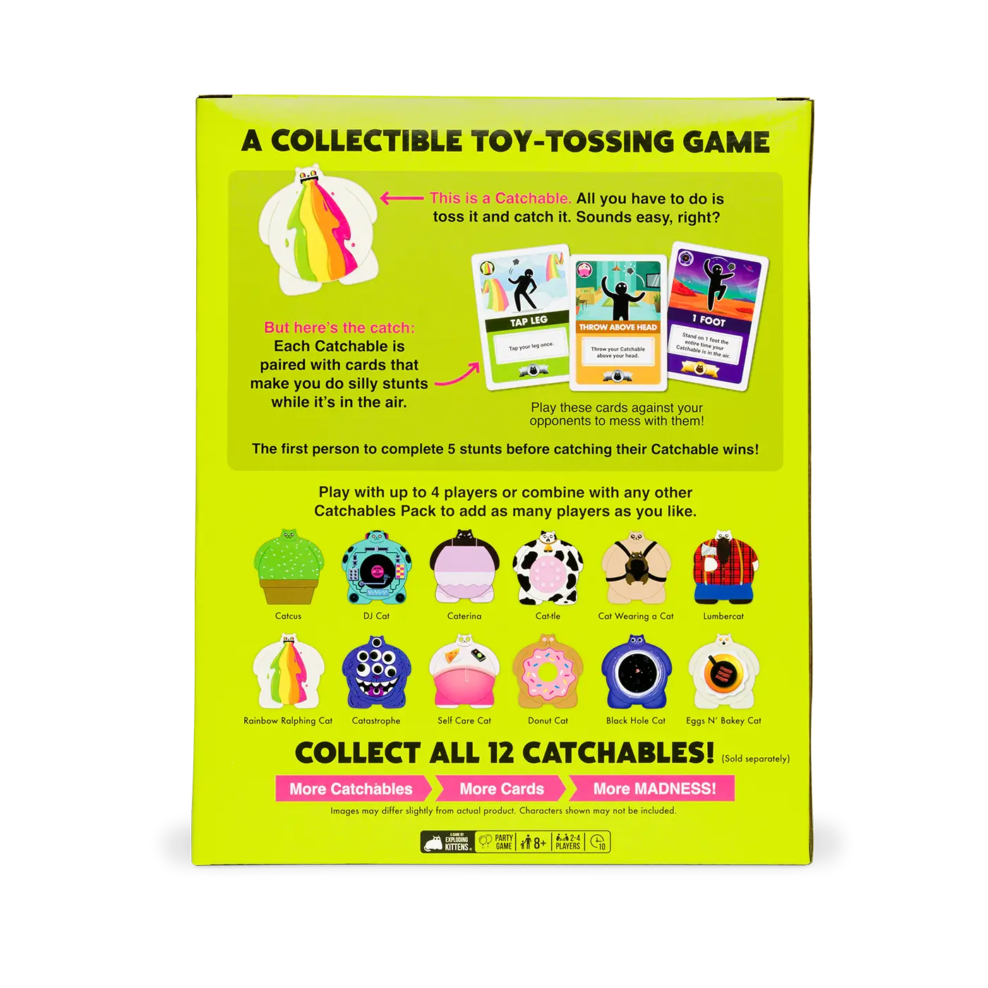 CATchables is an exhilarating card game from the makers of Exploding Kittens that puts your hand-eye coordination to the ultimate test. The premise is simple , but the tasks get harder and harder to complete as they are chosen for you by other players.