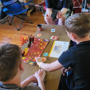 The game was a little confusing the first time we played. More move cards would be useful when playing with 6 players. More action cards that allow you to sabotage other players. Everyone said they would play again.