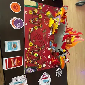 Thje only thing I'm worried about is longevity (with no data to back this up as of yet, but I still worry). We take a lot of our games to our beach house and one of the things we often encounter is swelling up of various cards/cardboard/paper elements in the humidity. We have even resorted to putting our OG Exploding Kittens deck (Kickstarter era!) on cookie sheets into the oven on low heat to dry out the cards on one occasion when they got puffy from the humidity. The flip-over-board element to this new game seems like it would not work so well if humidity swells up various elements (see paper hinge in pink circle in attached images)