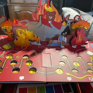 Overall, the board design was cute amd interesting, the Action cards were funny to read, the pop up aspect to the board was really cool...but the game itself felt bland. We played through three times and none of us were interested in playing again after that. Honestly, we had more fun switching the board back amd forth, amd watching the pop up action.
