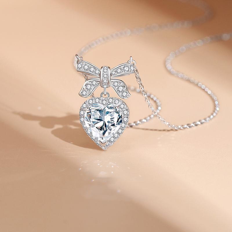 5. 【11.21 Valentine's Day Special】Heart Kiss 2CT Exquisite Bow Heart Necklace vvs Synthetic Moissanite Necklace in 925 Sterling Silver