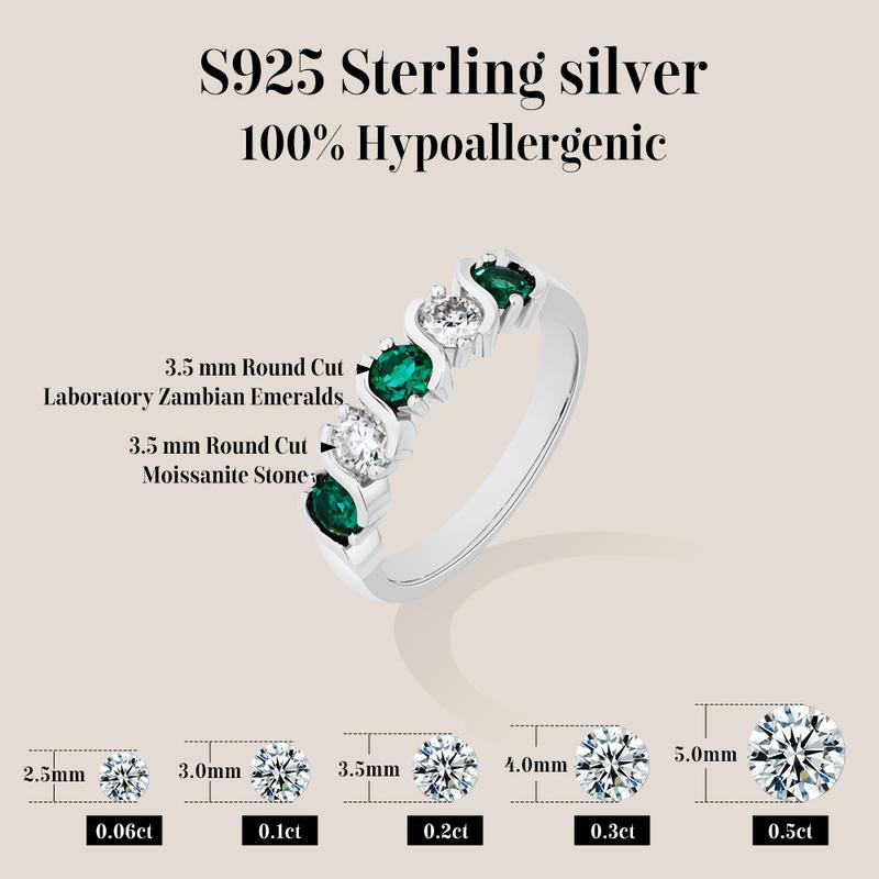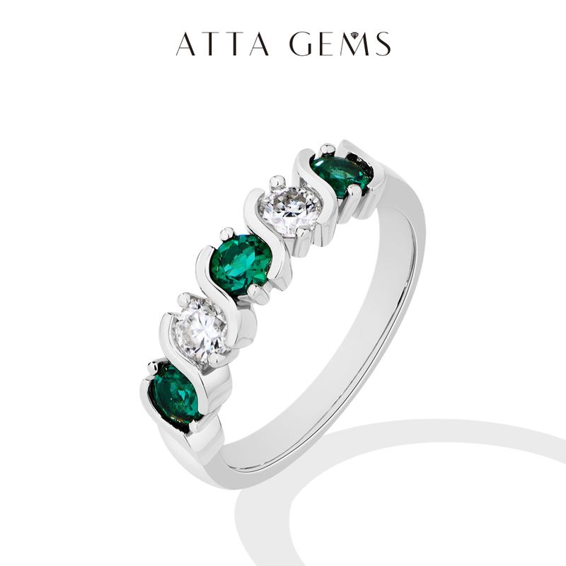 5. ATTAGEMS Round Brilliant Cut D Color VVS1 S925 Sterling Silver Lab-Created Moissanite& Green Stone Exquisite Jewelry Ring Wedding Engagements Gift R322