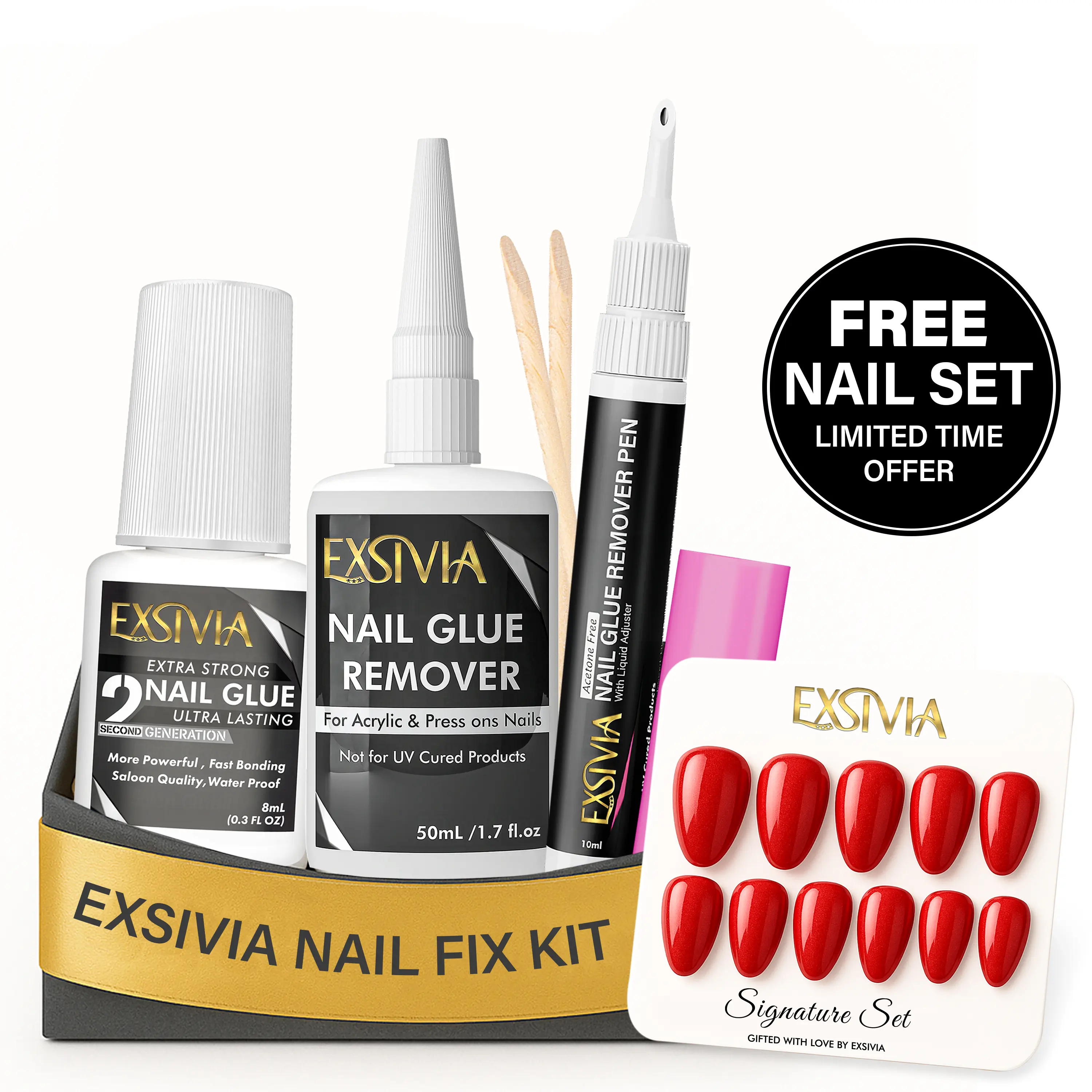 Loved Exsivia and the glue and remover already and then with the pen it’s a game changer. If you wear press on nails you have to prep your nails correctly but this glue is the best on the market I’ve had my nails on for 12 days as of today and they are still going strong 💜