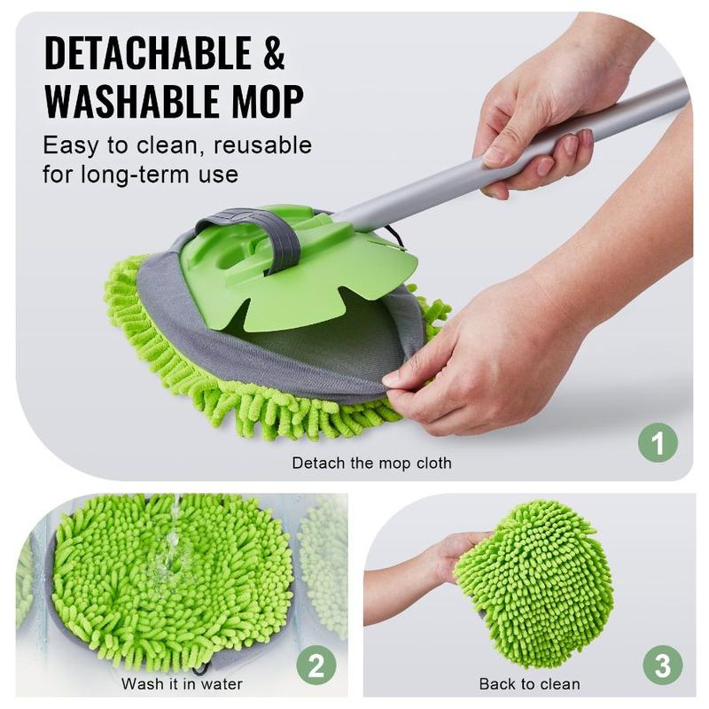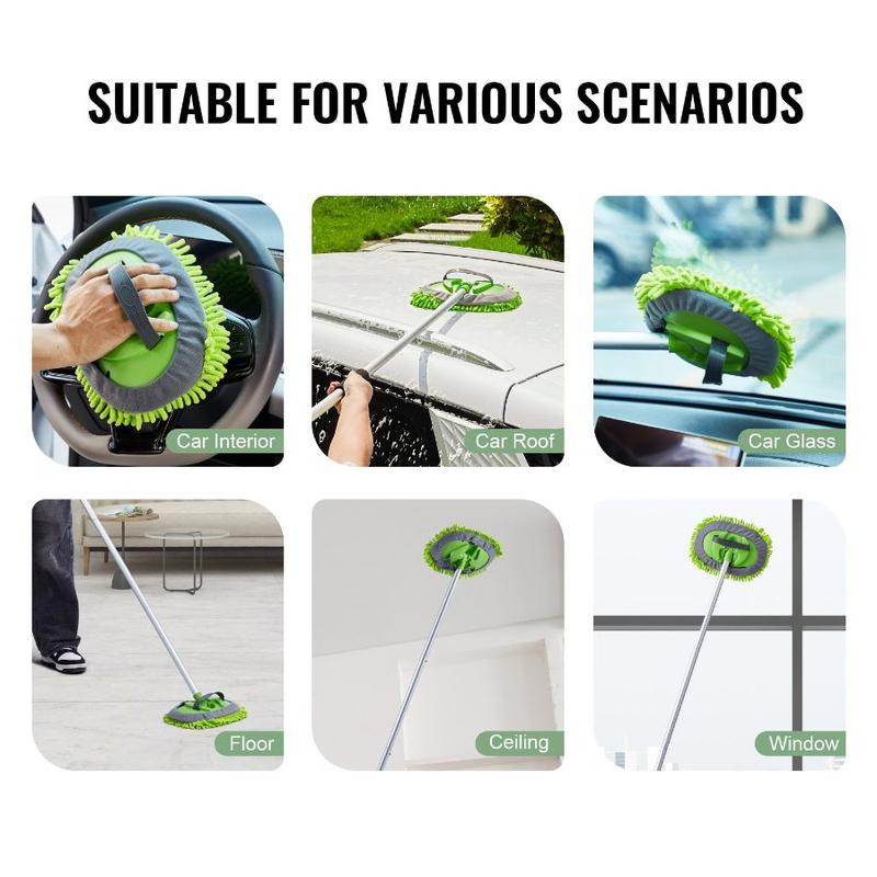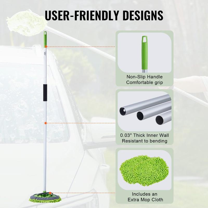 VEVOR Car Wash Brush, 66.7 - Inch Extendable Car Washing Brush with Long Handle, 12 Scratch - Free Soft PVC Bristle Head, Flow - Thru Car Cleaning Mop Kit with Water Hose Attachment for Car RV BoatVEVOR Car Wash Brush, 62-Inch Extendable Car Washing Brush with Long Handle, Soft Chenille Fiber Car Wash Mop Mitt, 180° Rotatable Car Cleaning Brush with 1 Replacement Mop for Car, RV, Window, Floor Multiple Uses Ultra-Soft Chenille Mop Head Replacement Mop Cloth Lightweight for