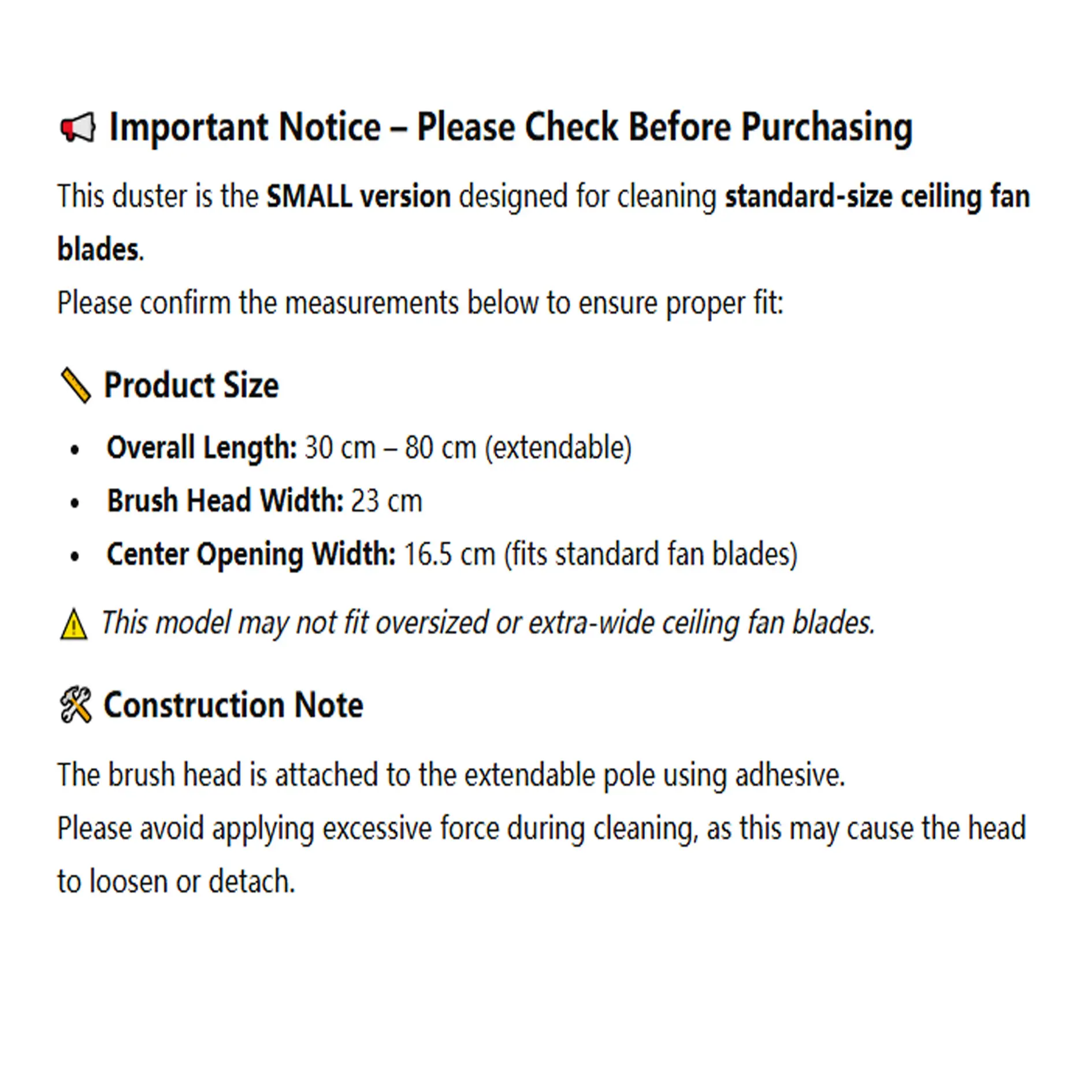 Expandable Functionality: This fan duster features an extendable handle with a maximum length of 80cm, making it versatile for various cleaning needs. It allows you to easily reach high places and hard-to-reach corners, helping you clean without the need for a ladder.