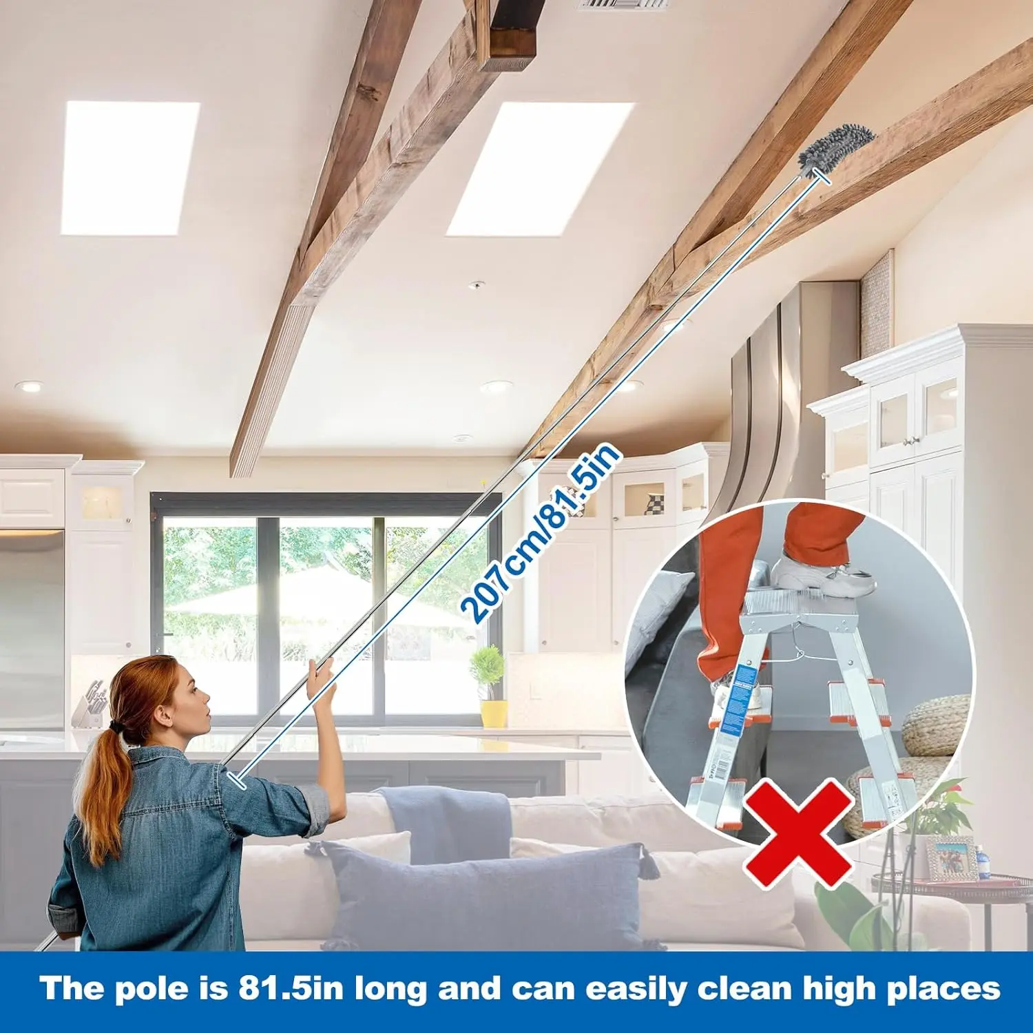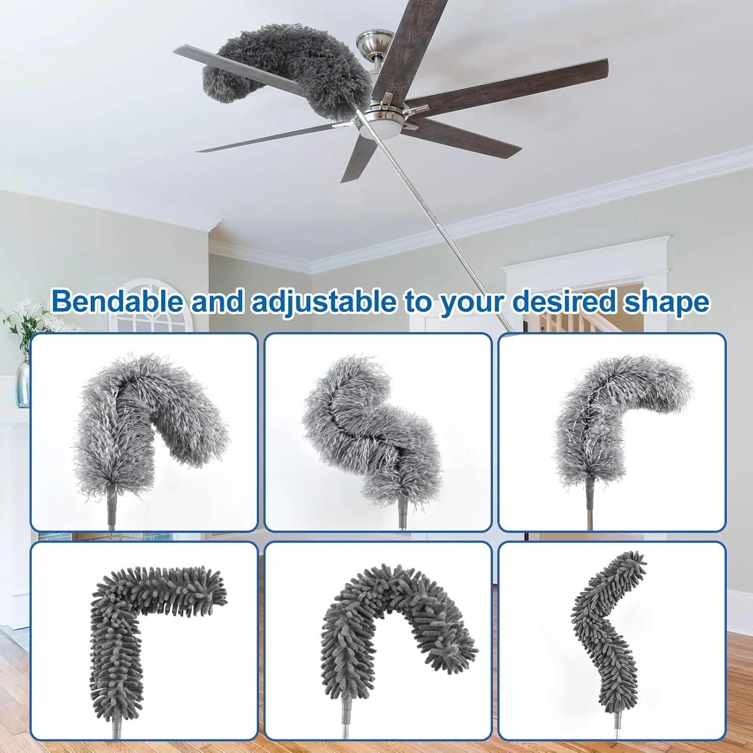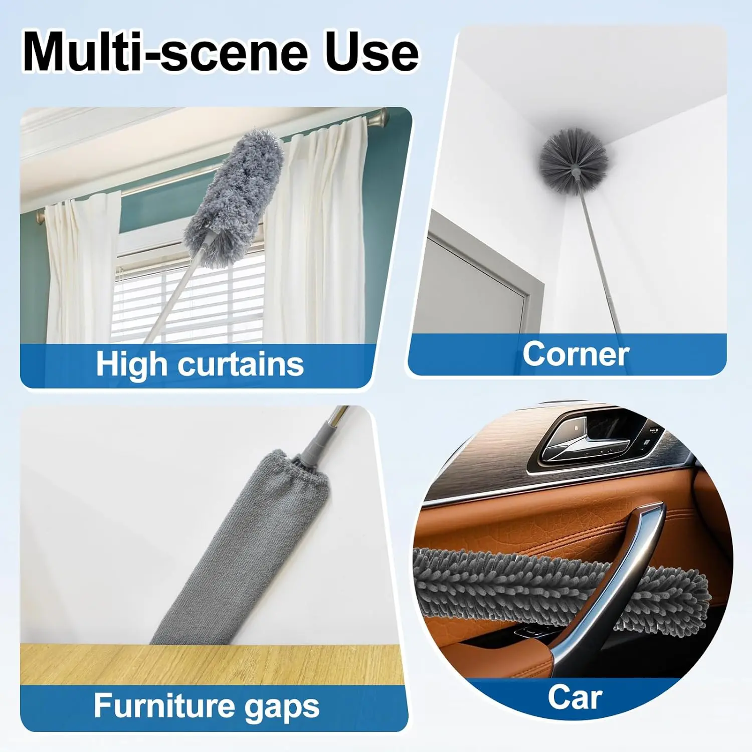 Extendable Feather Duster 4-Piece Set, 30-100 Inch Telescoping Pole, Bendable & Reusable, Perfect for High Ceilings, Fans, Lights, Blinds, Cars, Furniture