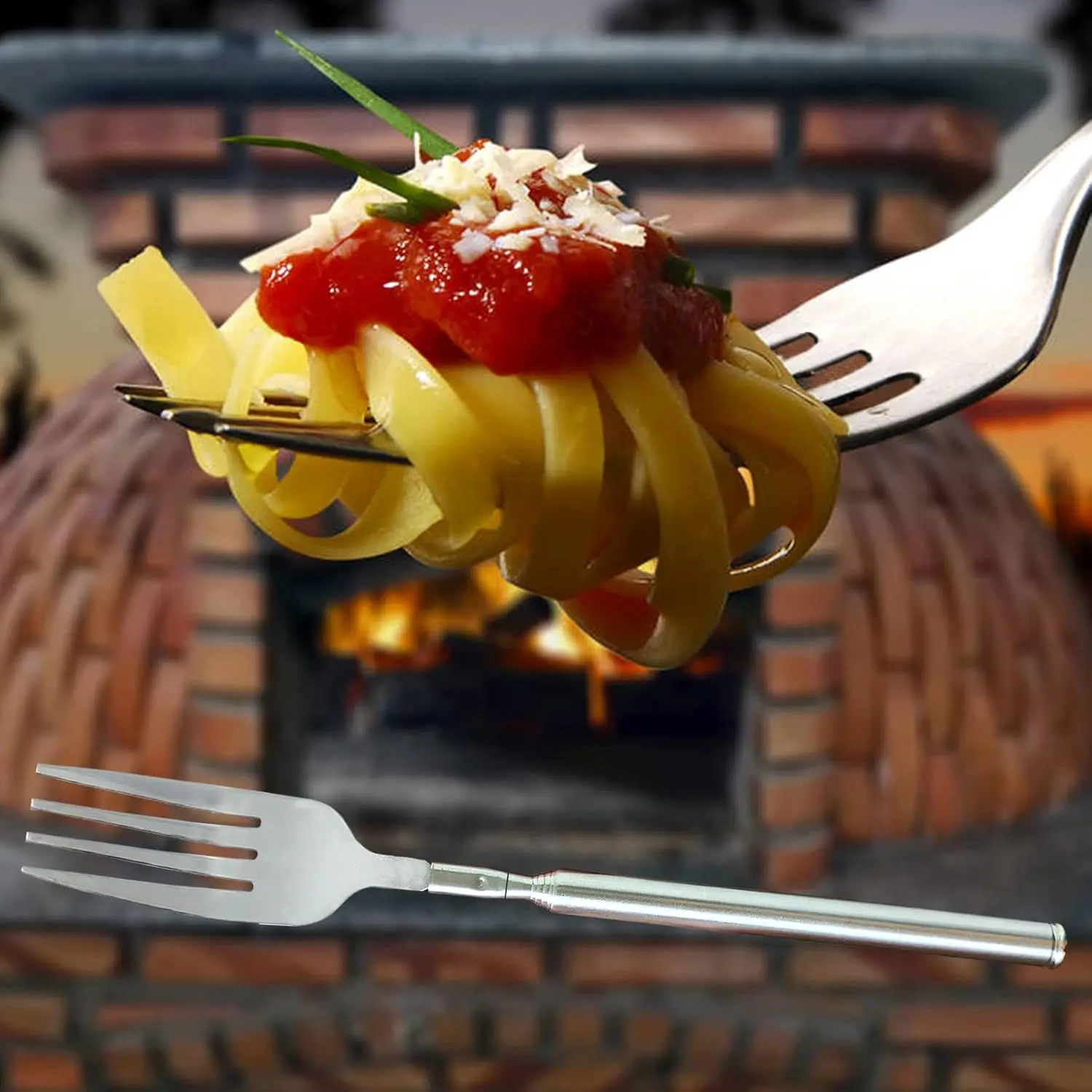 Versatile Applications: as stainless steel dinner forks, salad forks, pickle fork, or telescopic fondue forks for BBQ, dessert, fruit, and . This telescoping fork is ideal for kitchen use and outdoor camping adventures.
