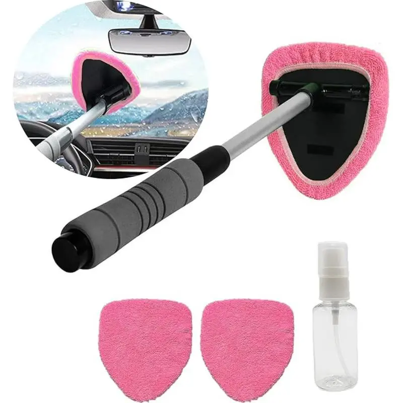 Elevate your car cleaning routine with this versatile tool!It features an extendable handle and three cloth pad heads, perfect for both interior and exterior glass.The kit includes a spray bottle for added convenience.Ideal for maintaining your vehicle's cleanliness effortlessly.