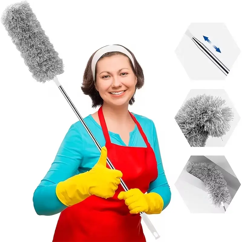 Extendable Microfiber Dusting Brush, Microfiber Ceiling Fan Duster with Bendable Head, Reusable & Washable, Ideal for High Ceilings, Home, Car, Patio, Battery-Free, Durable Stainless Steel Handle, Efficient Dust Removal, Ergonomic Design