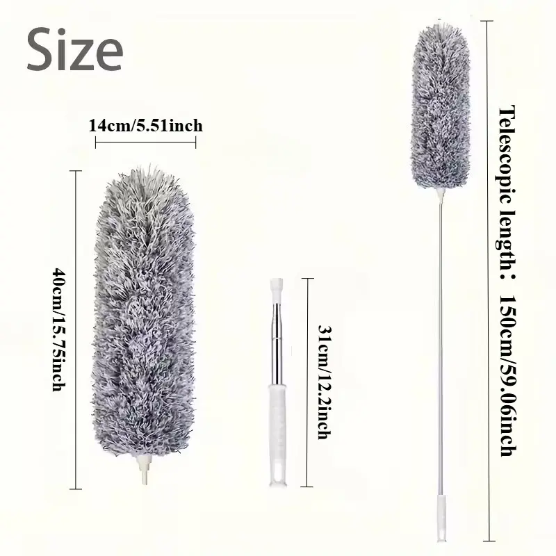 Extendable Microfiber Dusting Brush with Bendable Head - Reusable & Washable, Ideal for High Ceilings, Living Room, Bedroom, Bathroom, Car, and Patio - Battery-Free, Durable Stainless Steel Handle, Efficient Dust Removal, Ergonomic Design, Highquality Bristles