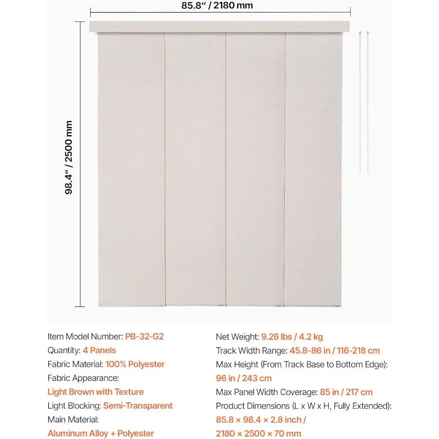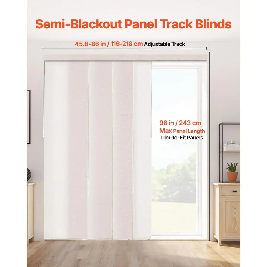 VEVOR Panel Track Blinds, Extendable Track from 45.8 in to 86 in W, Trimmable Panel Curtains Up to 96 in H, Vertical Blackout Panel Blinds for Sliding Doors, Patio Doors, Room Divider, Light GrayVEVOR Panel Track Blinds, Extendable Track from 45.8 in to 86 in W, Trimmable Panel Curtains Up to 96 in H, Vertical Blackout Panel Blinds for Sliding Doors, Patio Doors, Room Divider, Light Gray