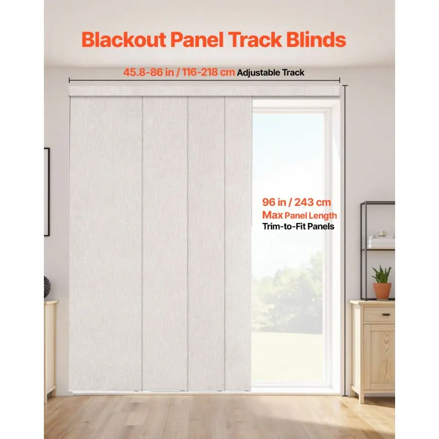 VEVOR Panel Track Blinds, Extendable Track from 45.8 in to 86 in W, Trimmable Panel Curtains Up to 96 in H, Vertical Blackout Panel Blinds for Sliding Doors, Patio Doors, Room Divider, Dark GrayVEVOR Panel Track Blinds, Extendable Track from 45.8 in to 86 in W, Trimmable Panel Curtains Up to 96 in H, Vertical Blackout Panel Blinds for Sliding Doors, Patio Doors, Room Divider, Light Gray