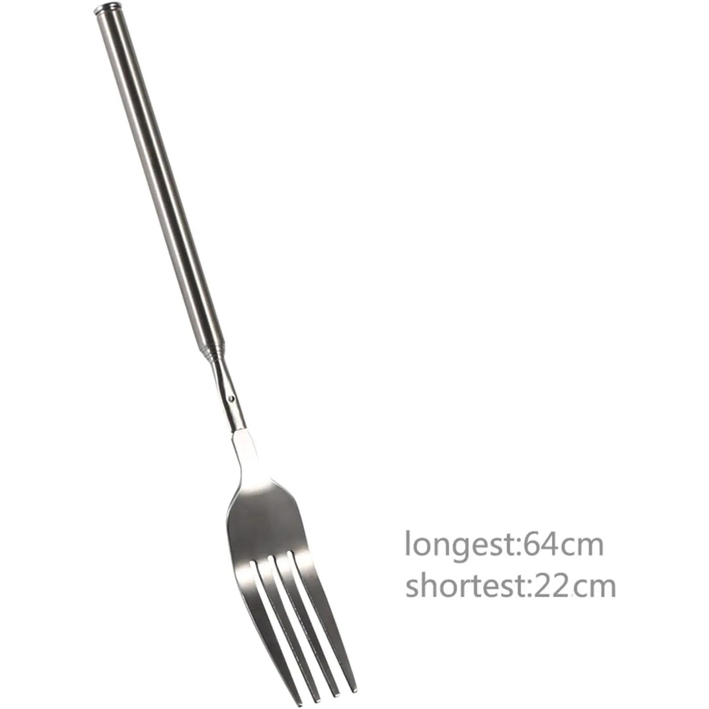Extendable Fork, Portable Stainless Steel Telescopic Long Handle Fork, Practical Rust-proof for BBQ Fruit Dessert Pastry