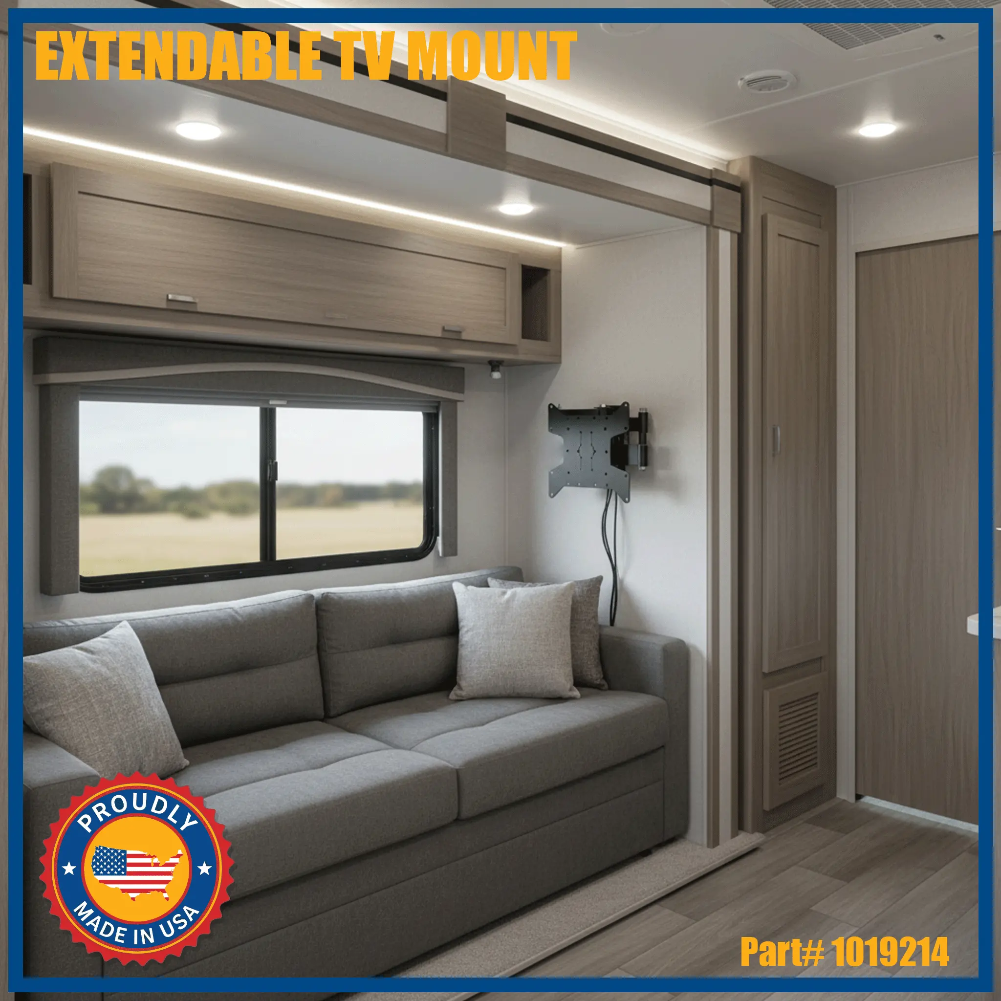 Our Extendable mount (Part #1019214) is a great addition to any situation which you may need to move a tv or swing it out. This mount will lock to any wall for easy transport and moving and will not move. These are also being used by many police stations, restaurants, hospitals/Dr. Office's and municipalities. While the concept is great for a travel trailer or camper, KEBLOC has become an industry standard mount that is made in the USA .