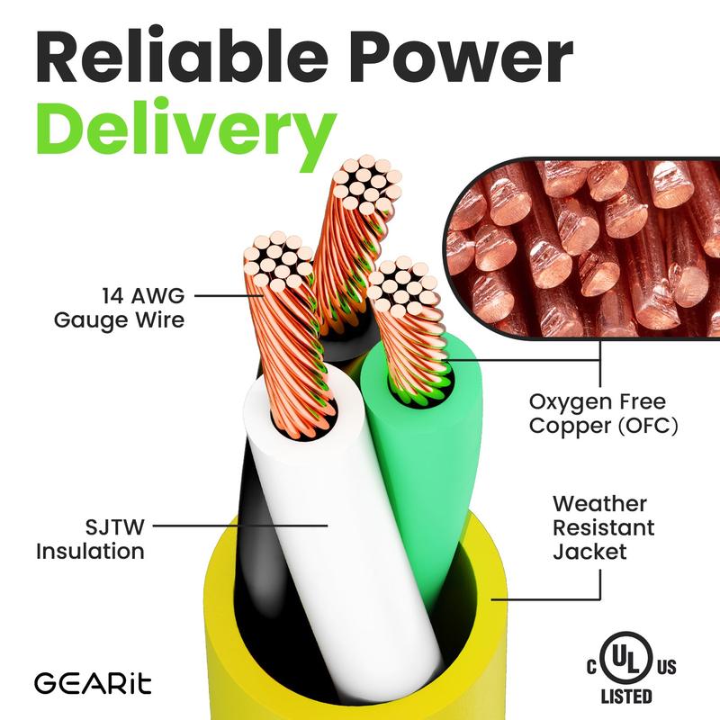 ·ALL-WEATHER DURABILITY - Designed to withstand rain, sleet, snow, and more, this heavy-duty 14-gauge cord is perfect for both indoor and outdoor use. Whether you’re on a jobsite, in a warehouse, or at home, it’s built to handle tough conditions.