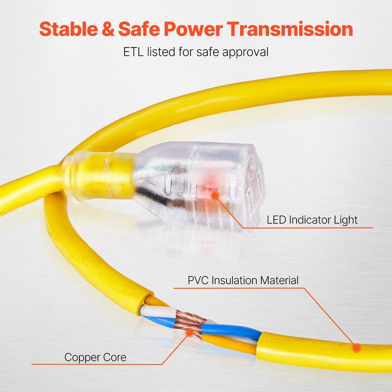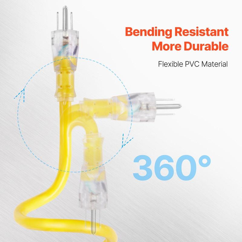 ·Lighted End: Our heavy-duty extension cord features an LED indicator at one end that illuminates when powered, making it easy to check the power status in low-light conditions and enhancing the user experience.