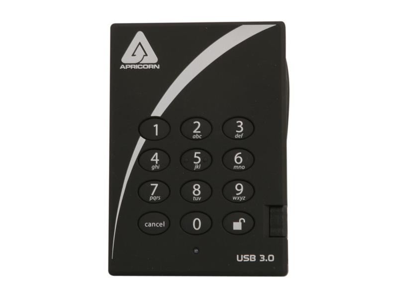 5. APRICORN 500GB Aegis Padlock External Hard Drive with 256-bit AES Encryption USB 3.0 Model A25-3PL256-500 Black