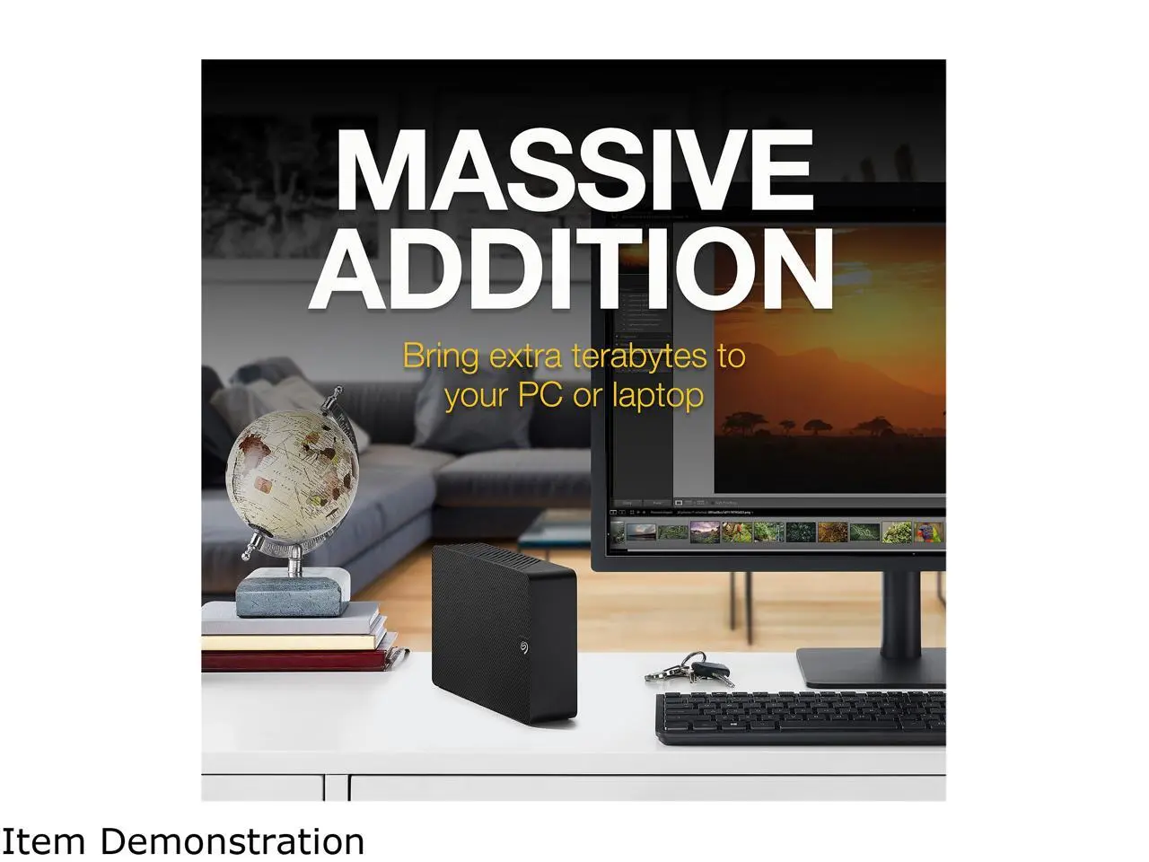 Seagate Expansion desktop drive, add-on storage for your PC and MacThe Seagate Expansion desktop drive provides extra storage for yourever-growing collection of files. Instantly add space for more files, consolidate all of your files to a single location, or free up space on yourcomputer's internal drive to help improve performance. Setup is straightforward; simply plug in the included power supply andUSB cable, and you are ready to go. It is automatically recognized by the Windows or Mac operating system, so there is no software to install andnothing to configure. Saving files is easy too-just drag-and-drop.