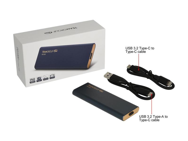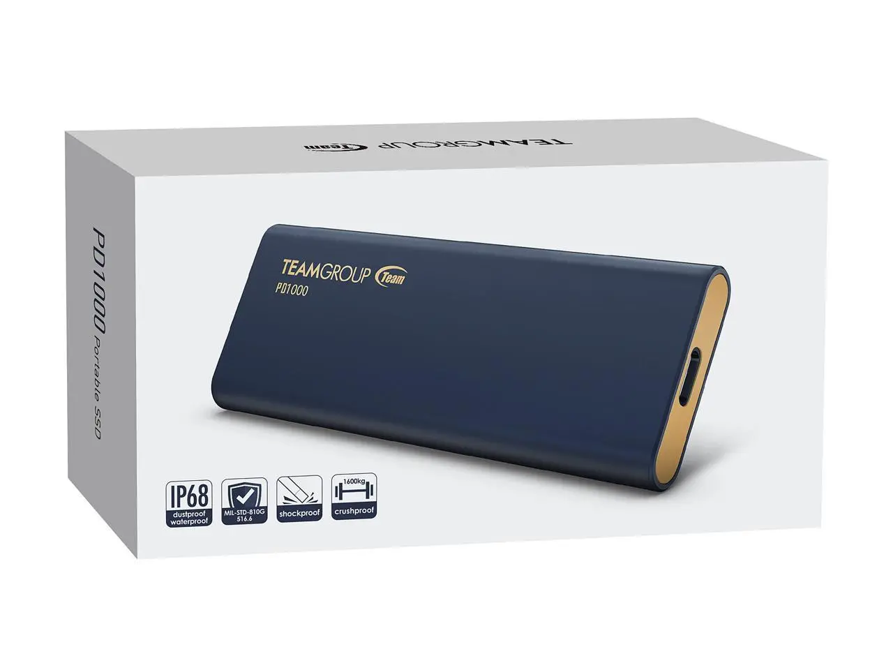 TEAMGROUP PD1000 1TB Aluminum Portable External Solid State Drive SSD, Read up to 1000MB/s, USB-C, USB A 3.2 Gen 2, Waterproof, Dustproof (IP68), Shockproof, Pressure Resistant (T8FED6001T0C108)