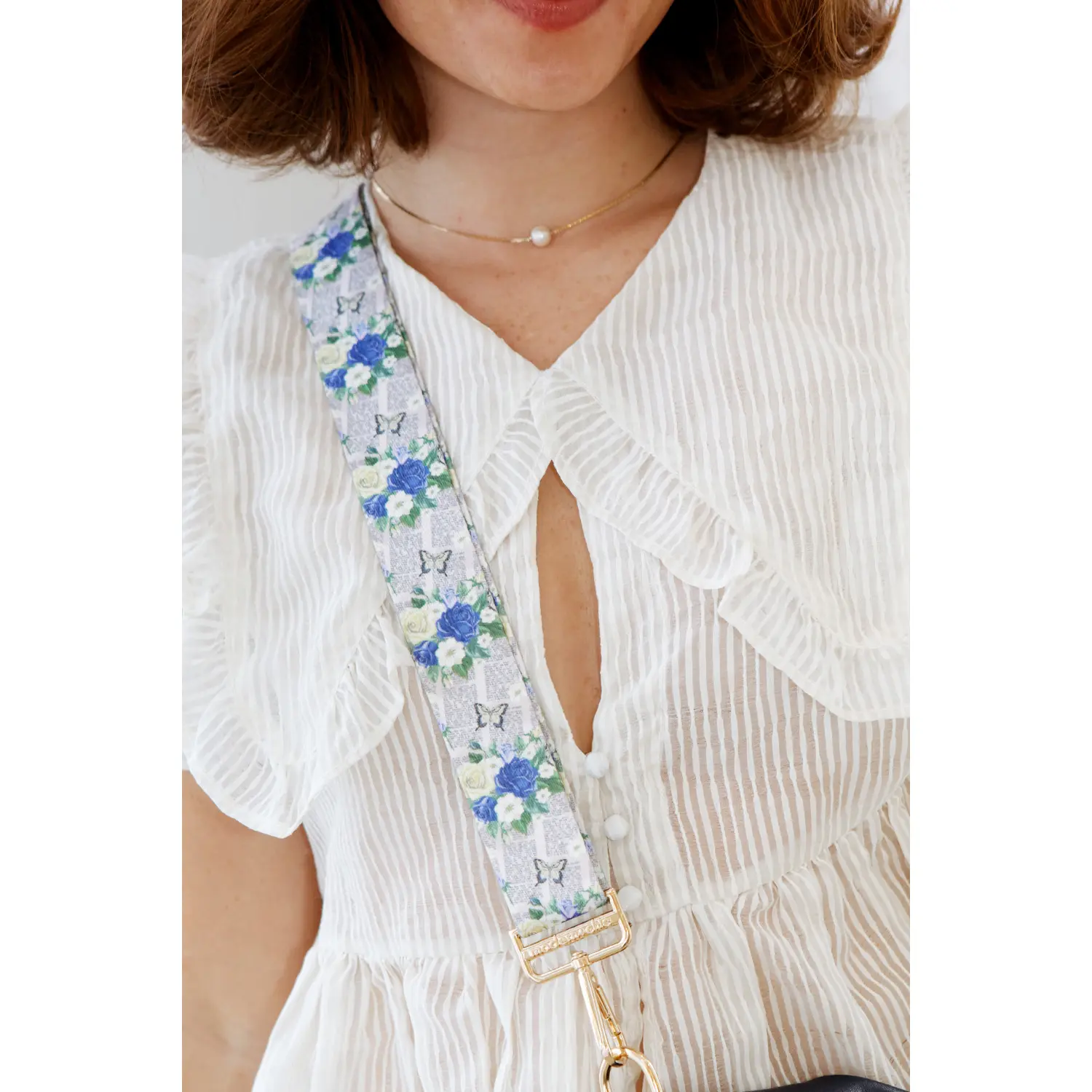 🦋 Extra! Extra! Adjustable Bag Strap Make a statement with the Extra! Extra! Adjustable Strap. Featuring a unique mix of florals, butterflies, and newspaper-style script, this design blends vintage charm with a bold, eye-catching look. The adjustable fit ensures comfortable wear, while the gold hardware adds a polished finish. An effortless way to give your favorite bag a fresh update.