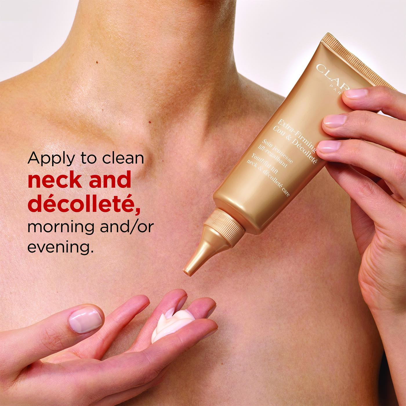 Smoothing, youthful lift care for the neck and décolleté formulated to visibly reduce horizontal and vertical neck wrinkles, skin slackening and age-related dark spots. The neck firming cream's youth-preserving formula, powered by the Sunflower extract firming complex, provides an immediate lift effect to sculpt the fragile area. Skin is visibly firmer, smoother, more toned and even with results that improve day after day.