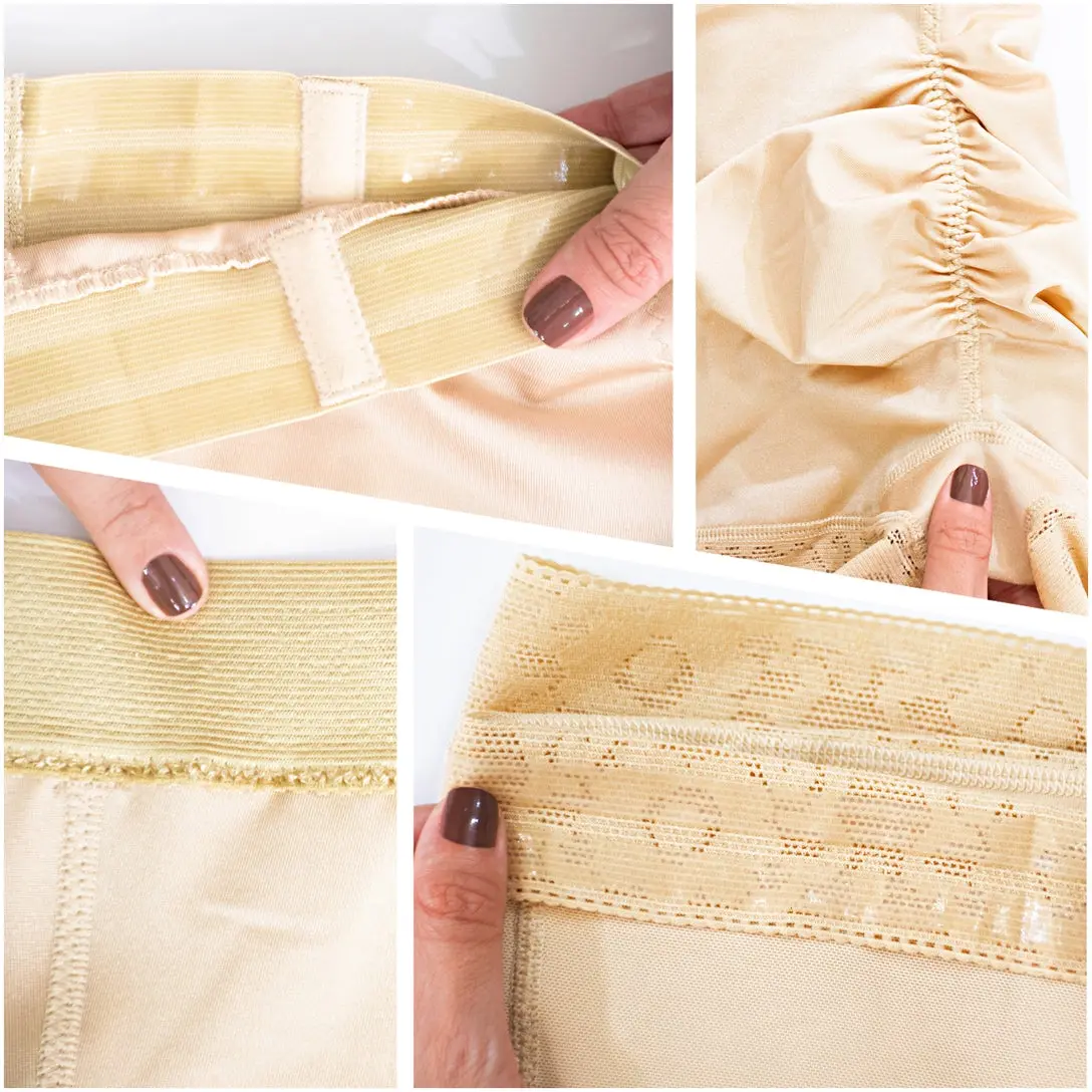 ·Silicone lace spiral boning on waist and thighs to prevent rolling.