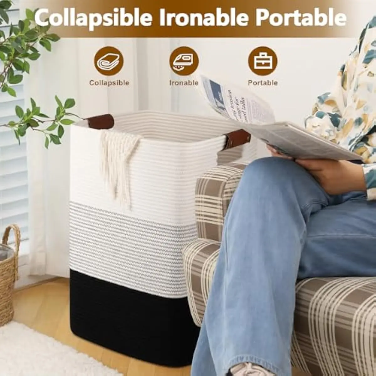 Upgraded Material & Structure: clothes hamper made of high-quality cotton rope, safe, and odorless, which is good for babies, kids, elders, and pets. In addition, the finer stitching & reinforced interface make our storage basket more sturdy