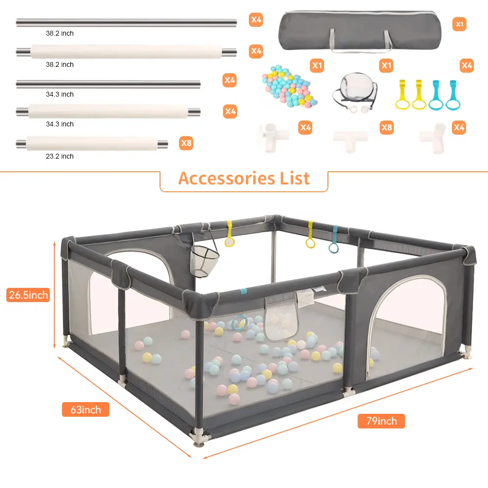 ·Dimensions: This playpen measures 79"x63"x27", providing ample space for your toddler. 📏