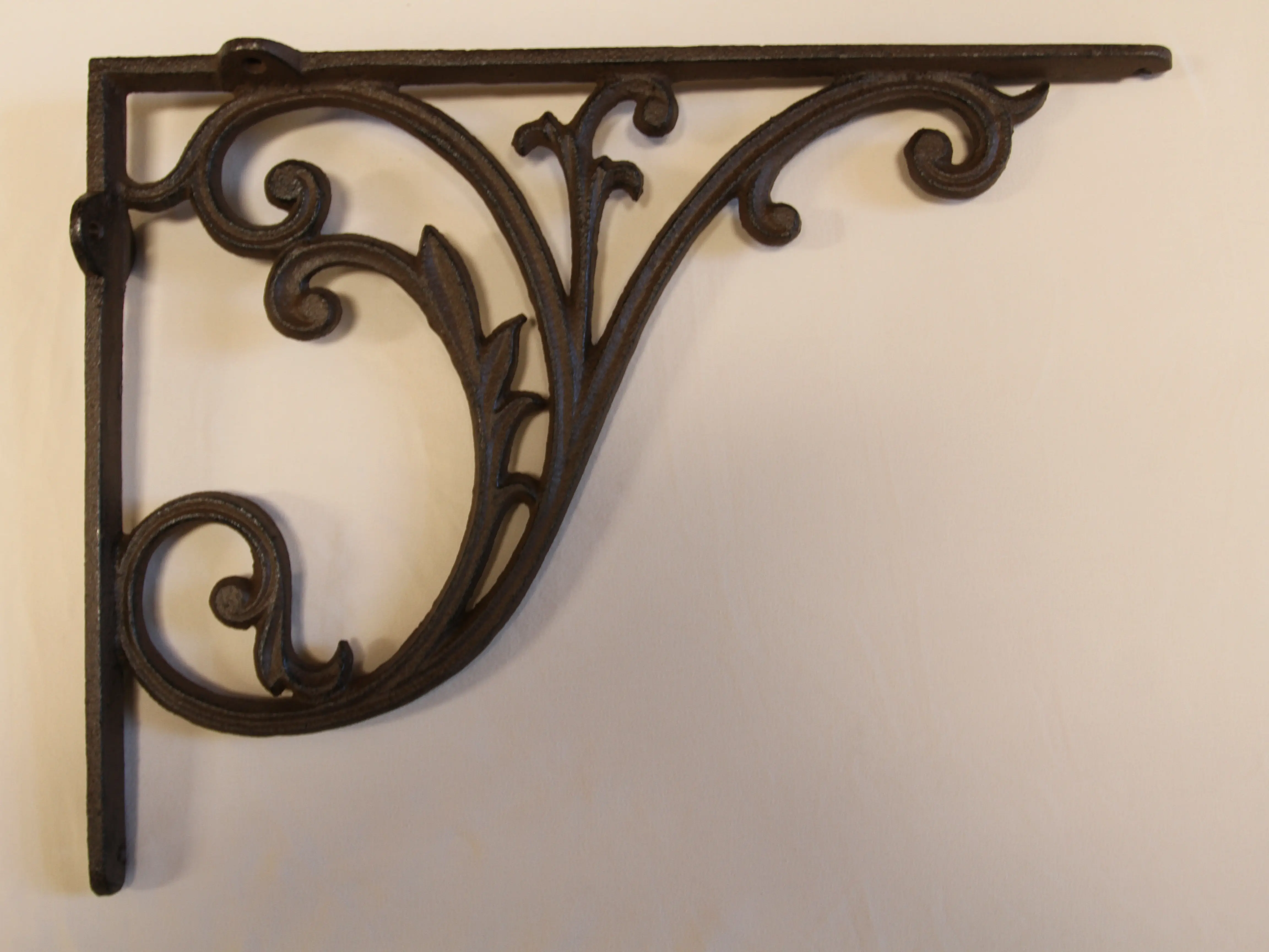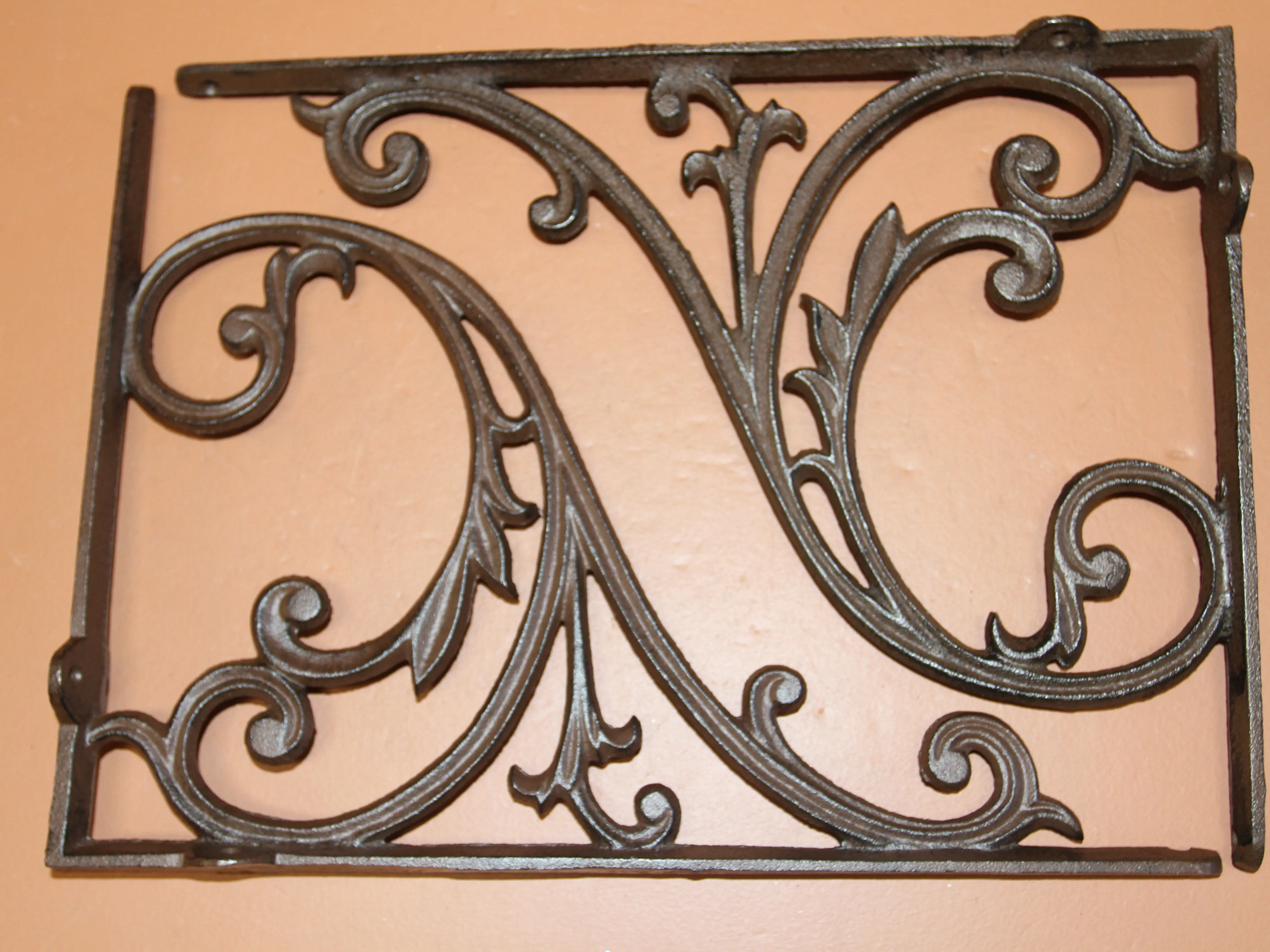 Victorian Floral Fan Pattern Shelf Brackets B-17 Porch Corbel Rusty Powder Coated Garden Decor 6 3/4" x 8 1/2"