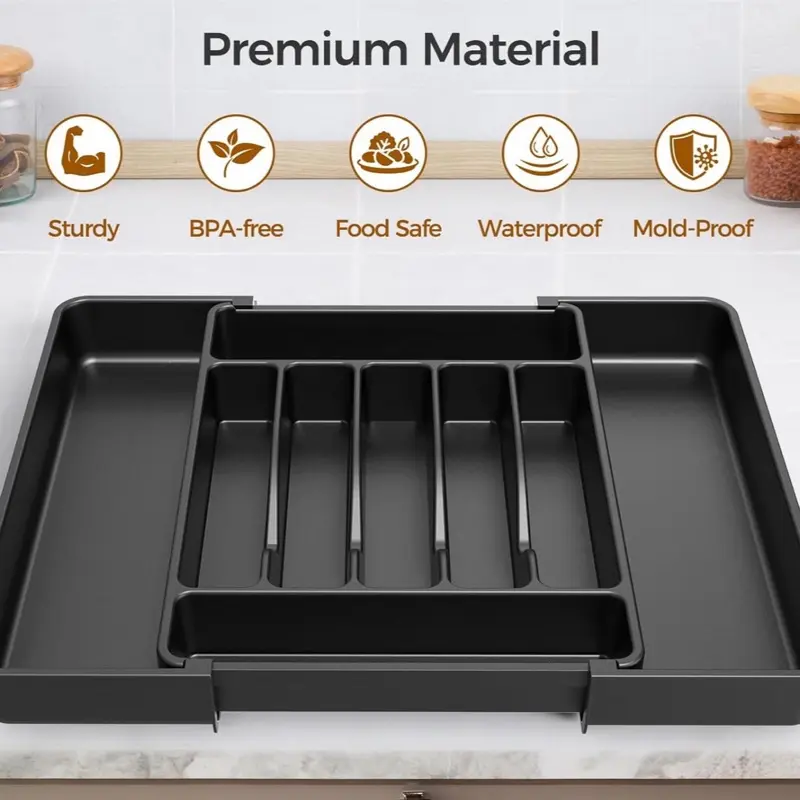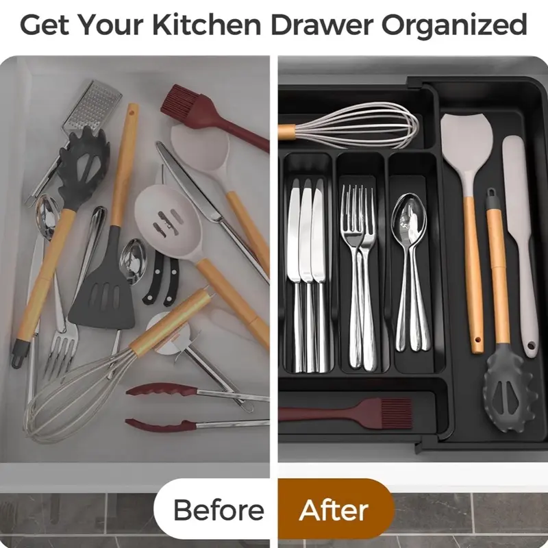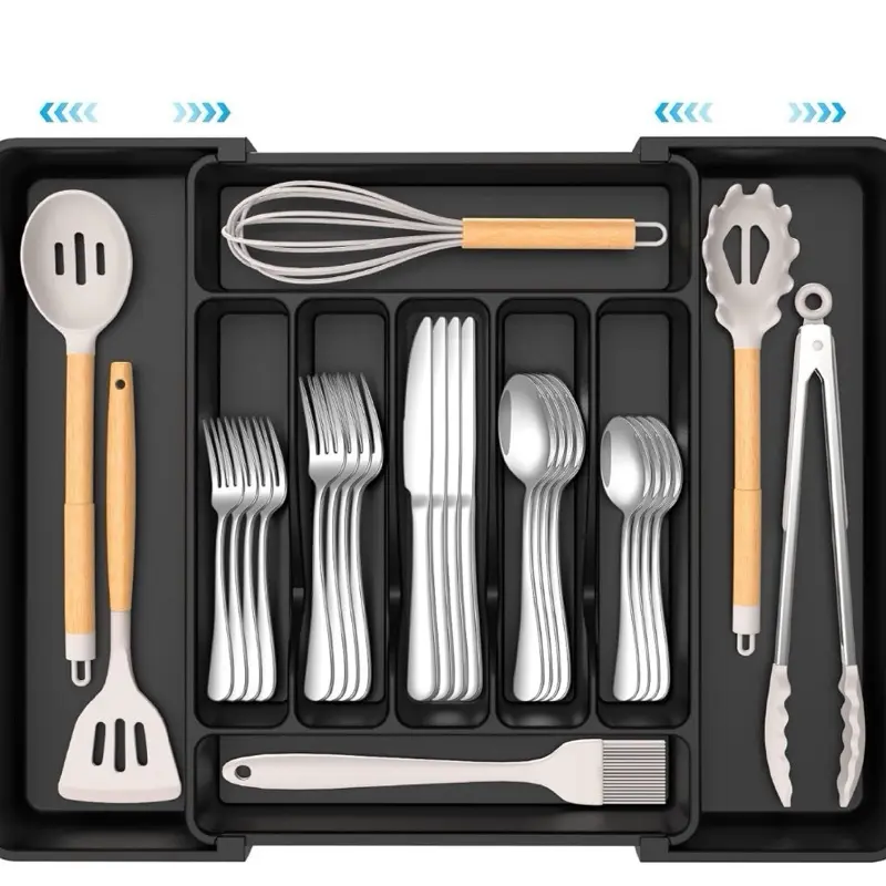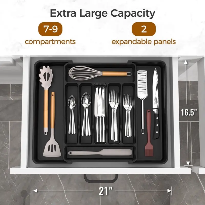 Extra Large Expandable Silverware Organizer Kitchen Utensil Drawer Organizer with Compartments for Utensils and Cutlery