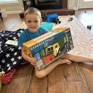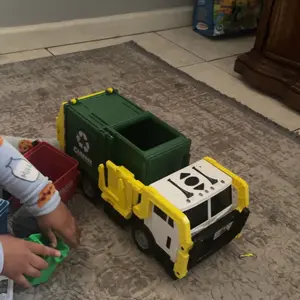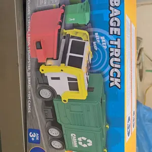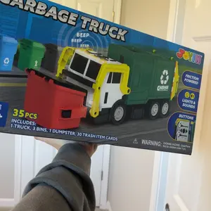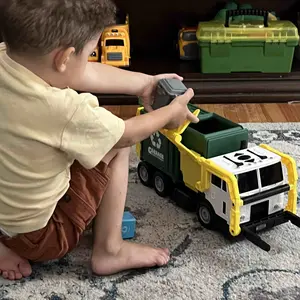 ·MULTIFUNCTIONAL LARGE GARBAGE TRUCK TOY: Our Front Load Garbage Truck Toy come with a front dumper dumping function, side lifting, and rear trunk trash bin dumping parts. This toy garbage truck comes with 1 friction powered Truck, 1 Dumpster Container, 3 Color Printed Trash Bins (Recyclable, Trash, Food Scraps ), with 3 Mini Trash Learning Cards (30 pcs Trash Images in total). This is an interesting toy set for your kids to develop their fine motor skills while having fun.