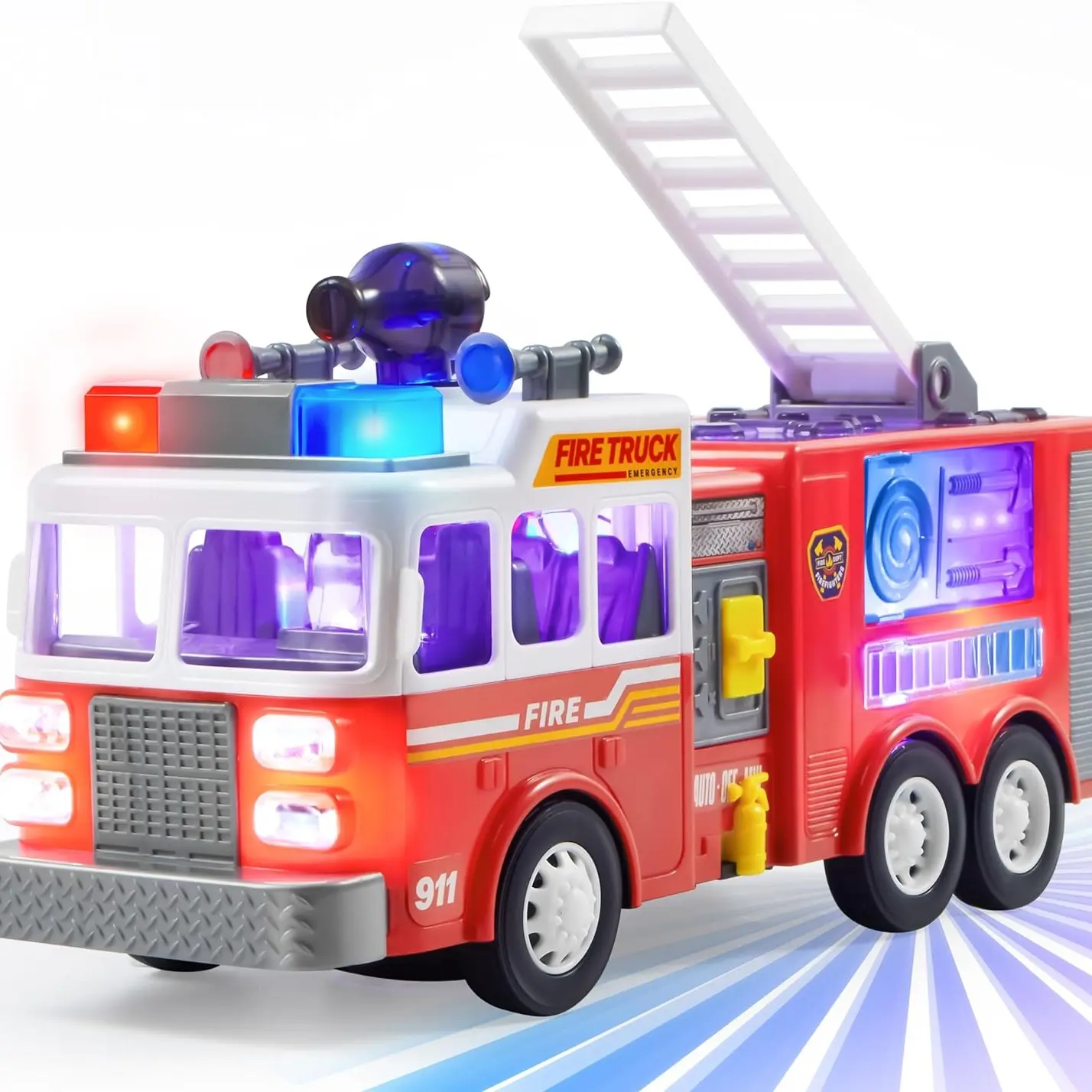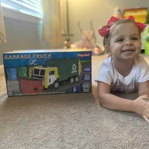·SIMULATED WORKING SOUND and LIGHTNING: Our interesting side loader garbage truck , stands out from the rest as we have equipped it with an electronic console with 3 batteries (Included). It features easily accessible buttons for toddlers, we have also included Simulated Horns, Working Sound and Headlights that creates a real kids' trash truck that shows the typical morning picking up service play scene.
