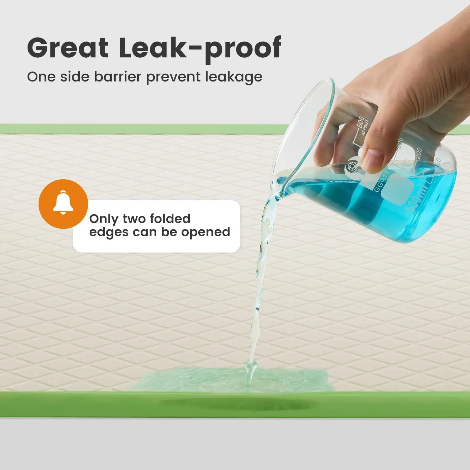 ·【Double Leak-proof】These pads are designed with extra four-sided barriers on the edge and an extended border, containing liquid and reducing side leakage, to provide double protection.