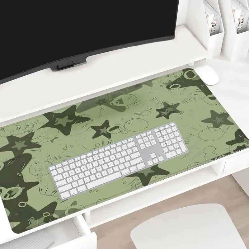 Extra Large Green Star Pattern Mouse Pad Stylish Gaming Mouse Pad 35x16 Inch Computer Keyboard Mousepad Suitable for Families, Offices and Schools. Perfect Gift for Family Members and Friends