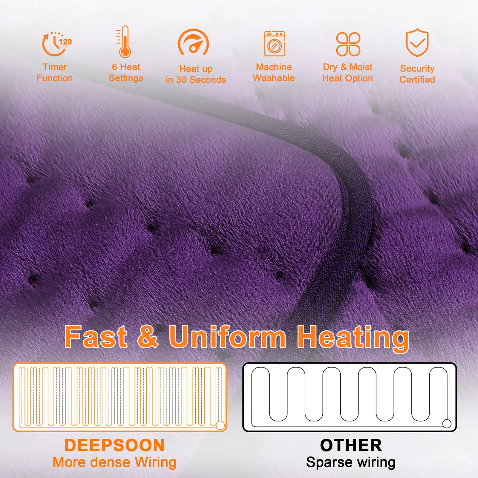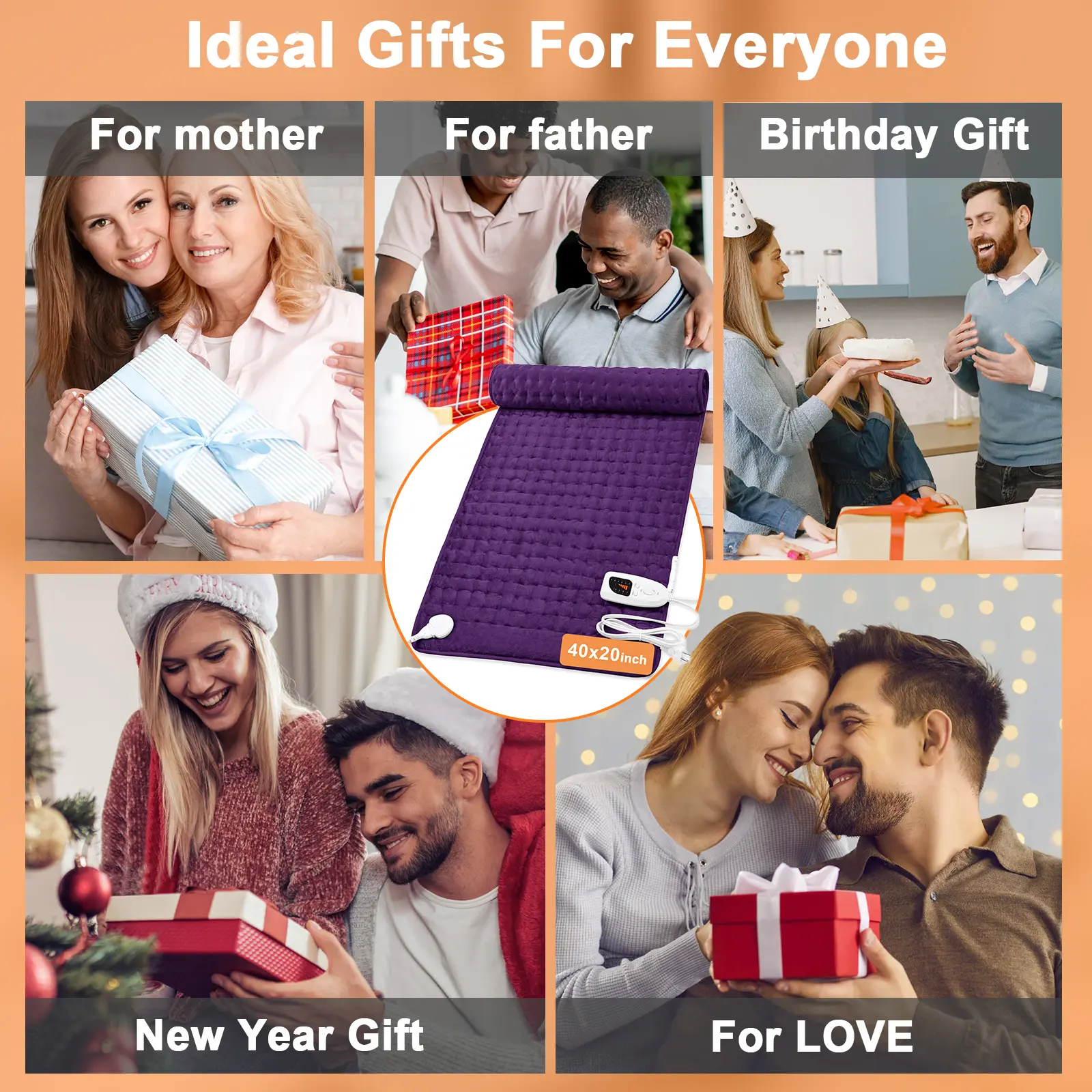 Dark Color Heating pad, size 40in×20in, 33in×17in, 24in×12in, 6 temperature levels and 4 time settings, portable, back, neck, shoulders and legs heating, machine washable, perfect holiday gift for men, women, parents, Christmas gift