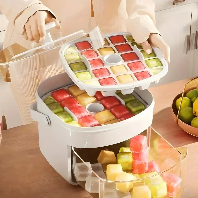 Extra Large Ice Maker 48 Grid, Double Layered Design, Easy Slide Out, Food Grade Plastic Tray, Ideal for Whiskey & Cocktails, Ice Cube Maker