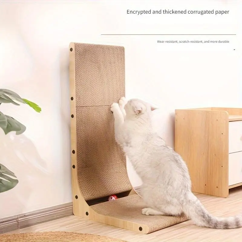 5. Extra Large L Cat Scratching Post and Toy, Scratch Column, Space-Saving Design for Indoor Cats, Durable Corrugated Material