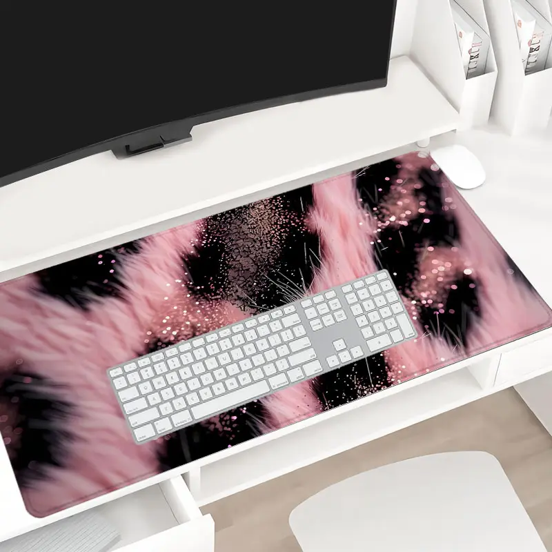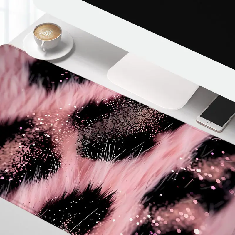 Extra Large Pink Leopard Print Mouse Pad Soft Fur Gaming Mouse Pad 35x16 Inch Computer Keyboard Mousepad Suitable for Families, Offices and Schools. Perfect Gift for Family Members and Friends