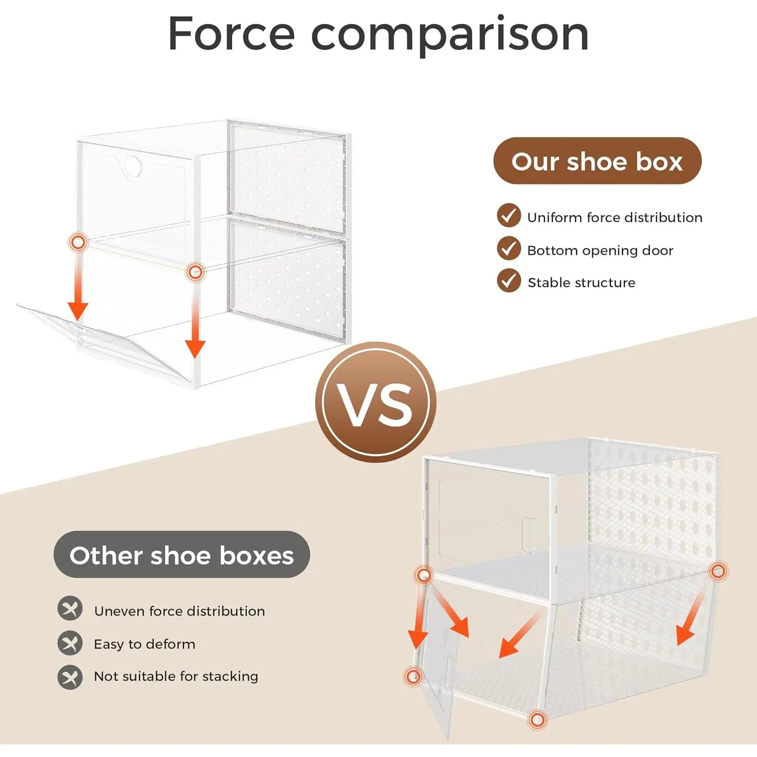 · What are the dimensions of the shoe box?Can it fit my 10 pairs of shoes? Yes, they can.These shoe boxes are suitable for men's size 12 or women's size 13
