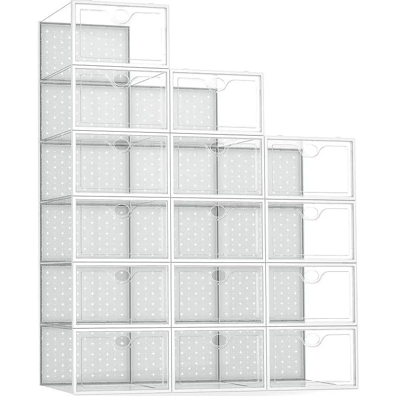 15-Pack Extra Large Shoe Storage Boxes Suitable for Size 12, Shoe Organizer for Wardrobe Transparent Plastic Stackable Shoe Display Boxes Storage Bins Suitable for Sneaker Enthusiasts Sneaker Storage Boxes White