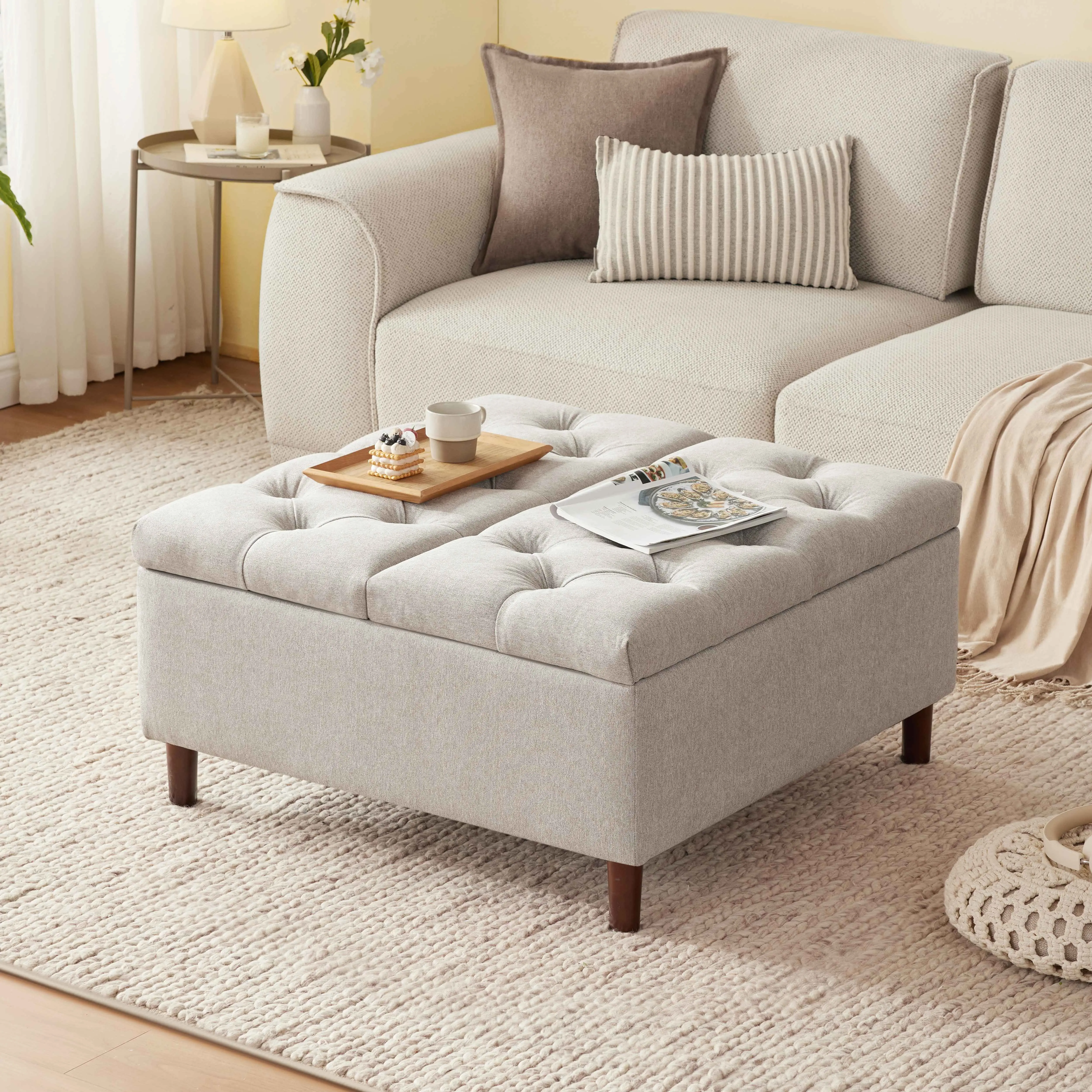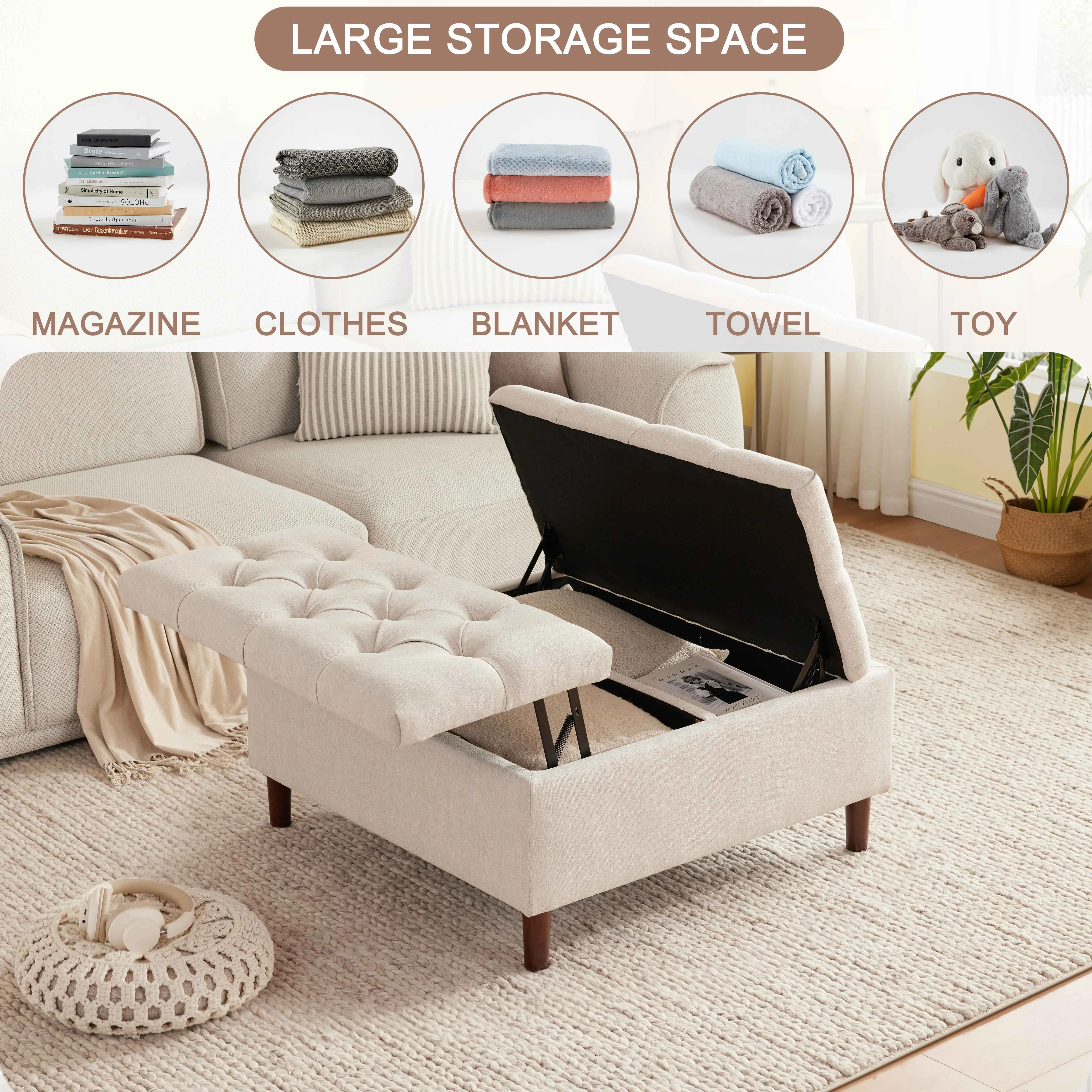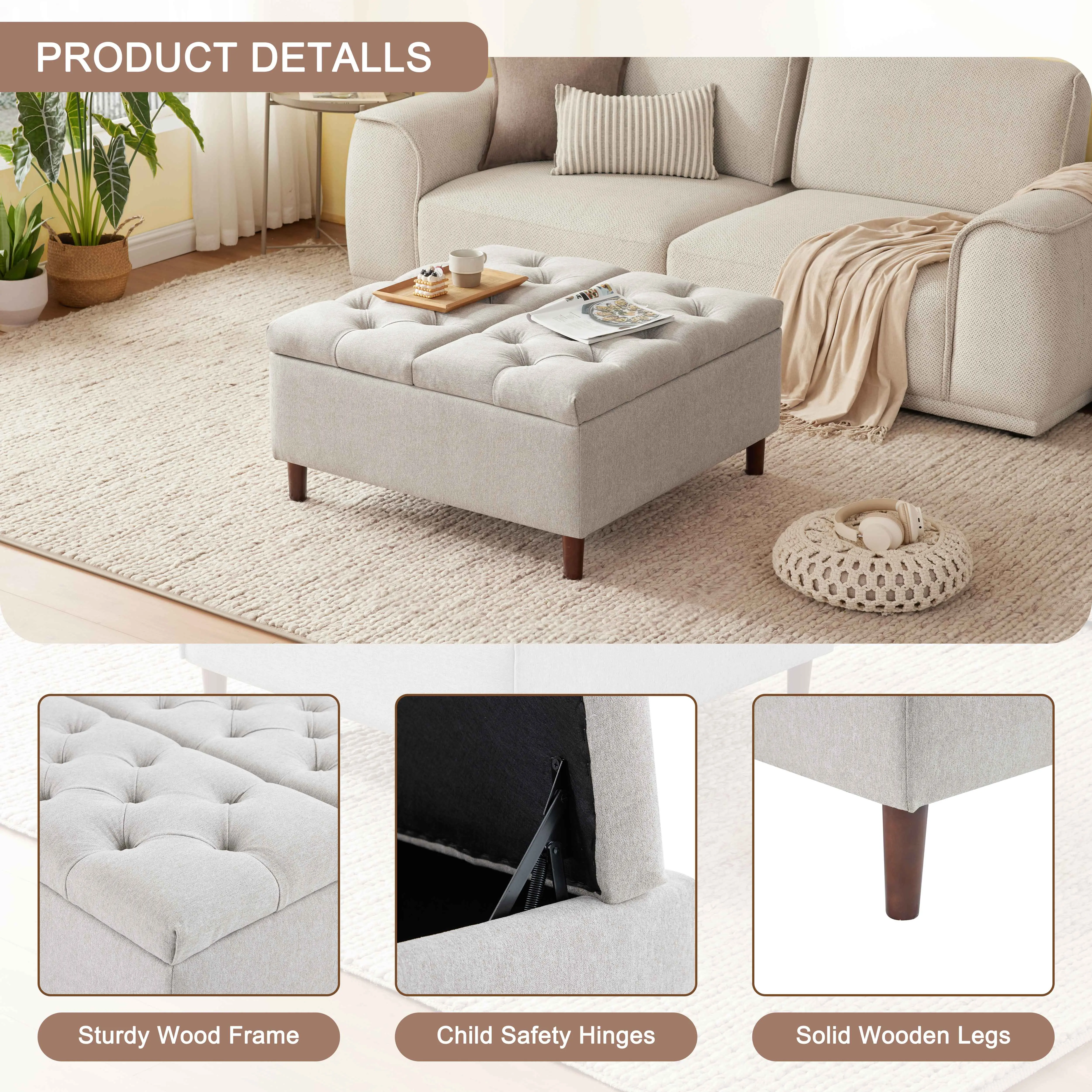 ·STYLISH APPEARANCE: With its button-tufted design, which is chic and contemporary, our living room coffee table ottoman with storage effortlessly complements your living room, bedroom, study room, and leisure areas