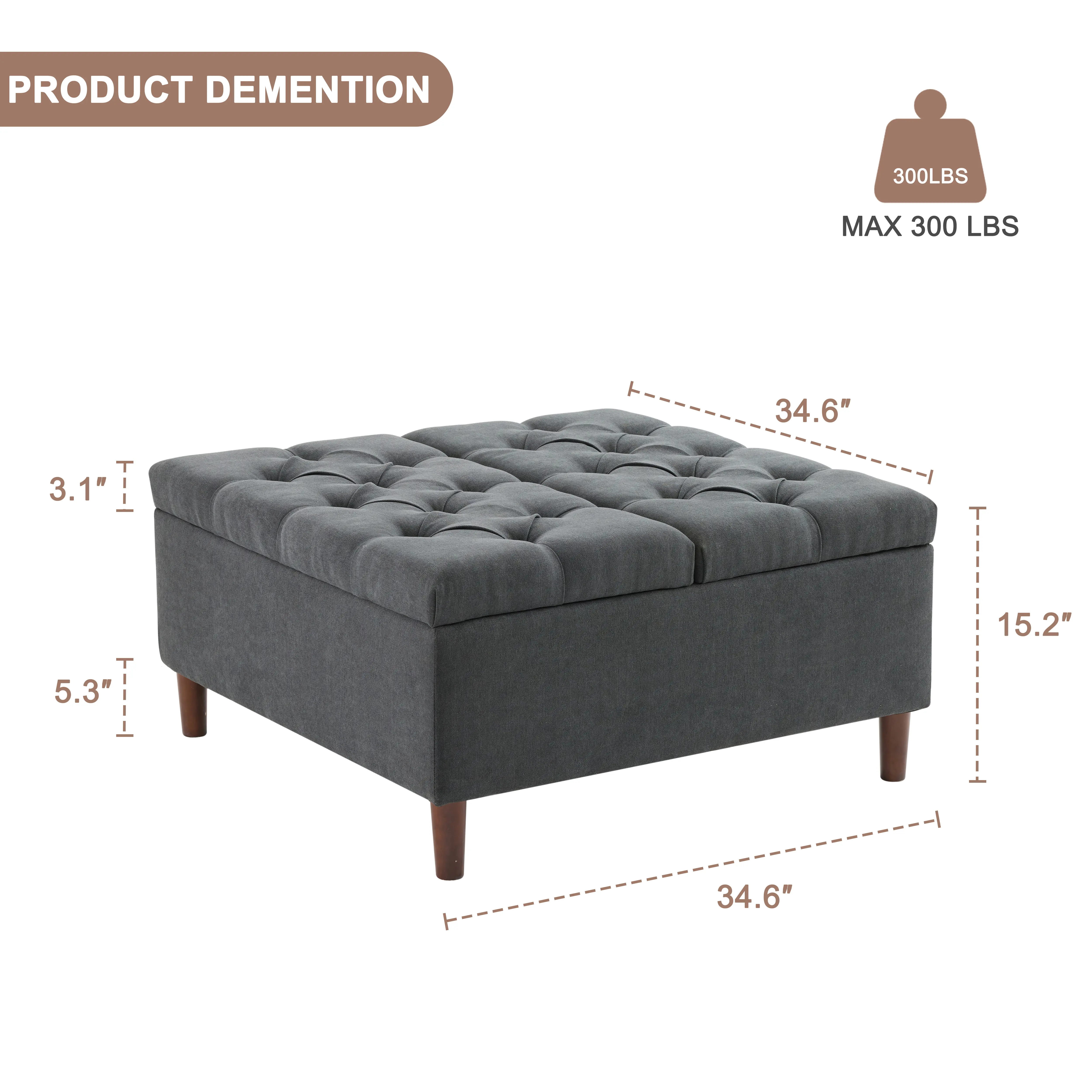 ·STURDY and DURABLE: Featuring a sturdy wood frame, and durable wood legs, our storage ottoman large guarantees long-term durability. It can support up to 300 pounds as a footrest and 100 pounds with the lift-top open, ensuring reliability for various uses