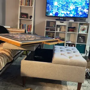 ·LIFT-TOP DESIGN: Weture large lift top ottoman coffee table is designed to easily transition from a footrest to a coffee table, making it perfect for using laptops or enjoying meals. With the lift-top design, you don't need to move items to open it