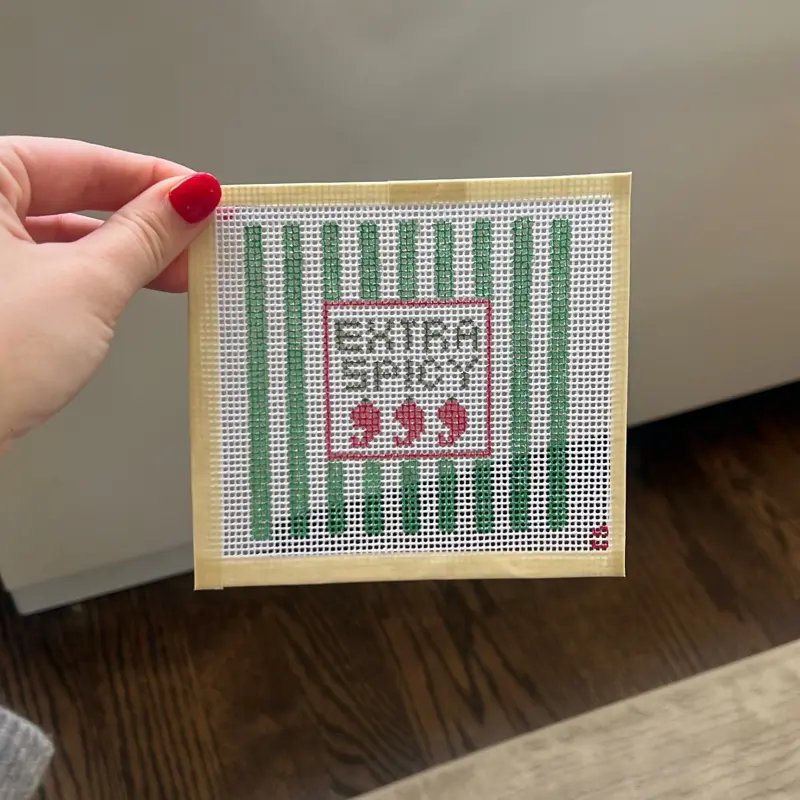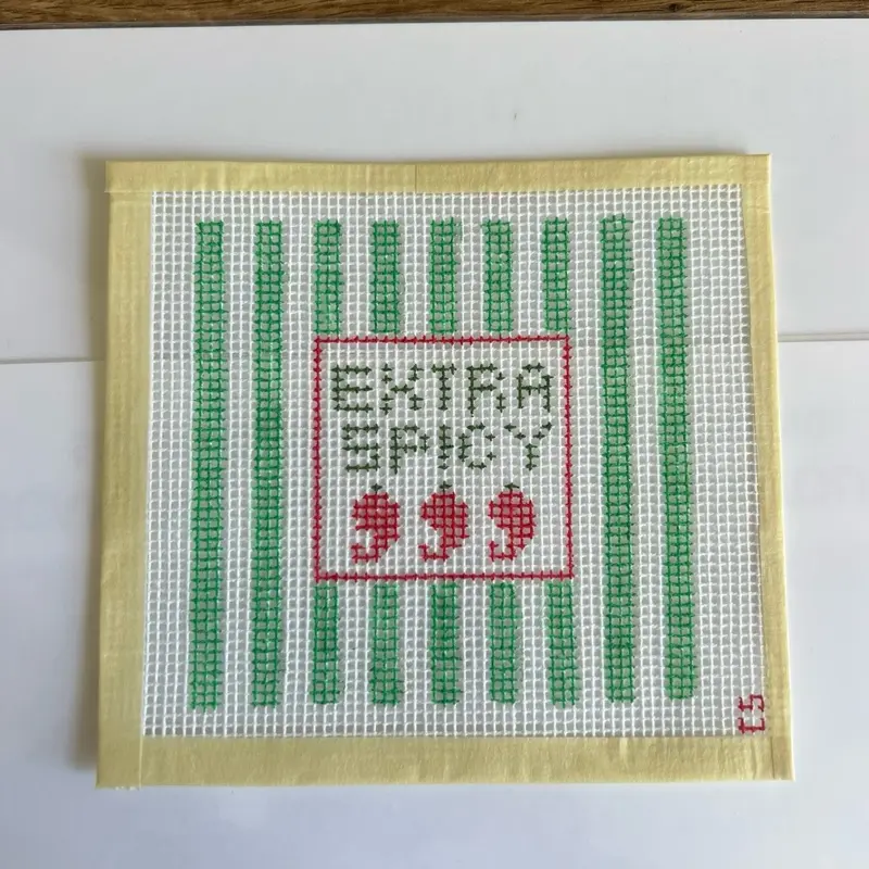 ·This coaster is designed for those who enjoy a spicy kick. The needlepoint design adds a unique touch to your dining experience. Perfect for enhancing the flavor of your meals.